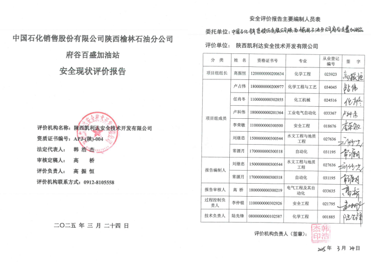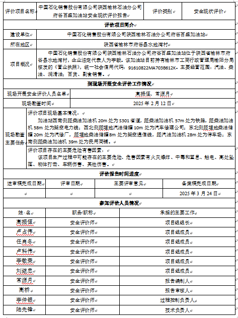 KLDAP[2025]-3.31中國石化銷售股份有限公司陜西榆林石油分公司府谷百盛加油站安全現(xiàn)狀評價