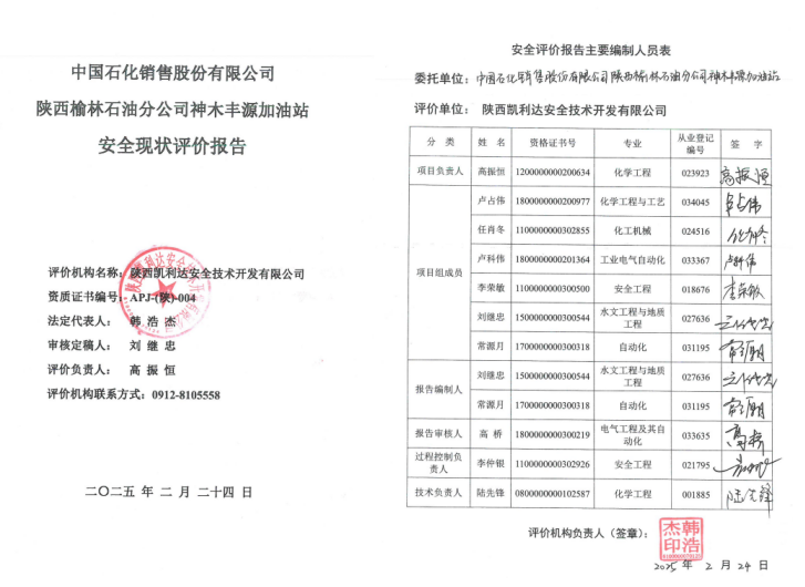 KLDAP[2025]-3.33中國(guó)石化銷(xiāo)售股份有限公司陜西榆林石油分公司神木豐源加油站安全現(xiàn)狀評(píng)價(jià)