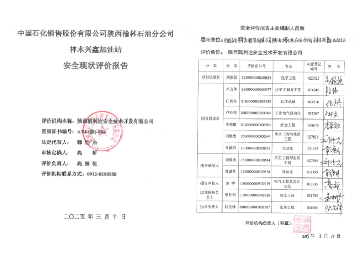 KLDAP[2025]-3.36中國(guó)石化銷(xiāo)售股份有限公司陜西榆林石油分公司張家坬加油站安全現(xiàn)狀評(píng)價(jià)