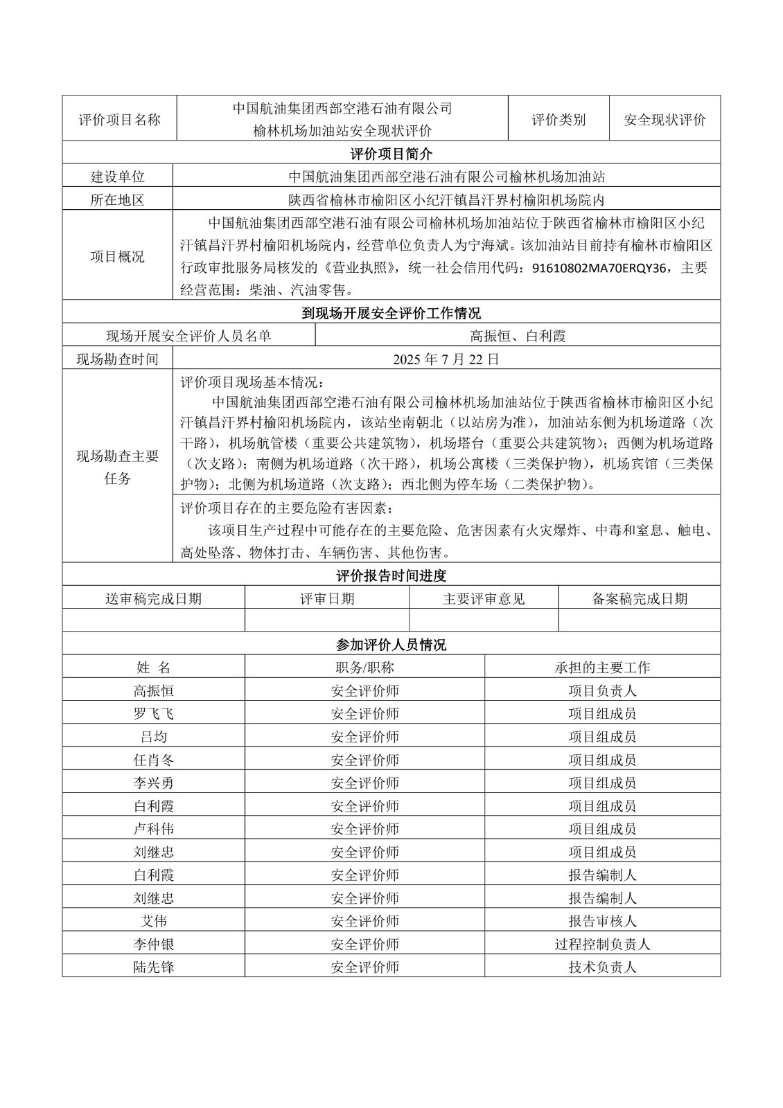 KLDAP [2025]-3.19中國航油集團西部空港石油有限公司榆林機場加油站安全現(xiàn)狀評價