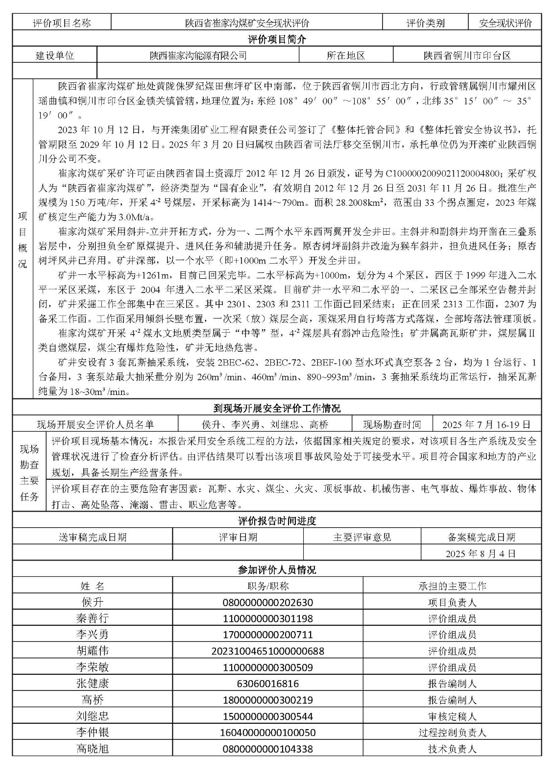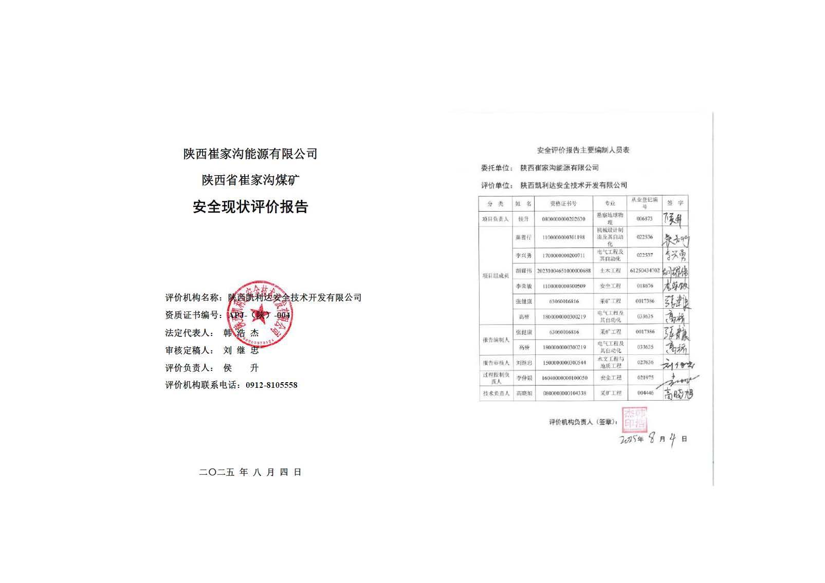 陜西崔家溝能源有限公司陜西省崔家溝煤礦安全現(xiàn)狀評(píng)價(jià)