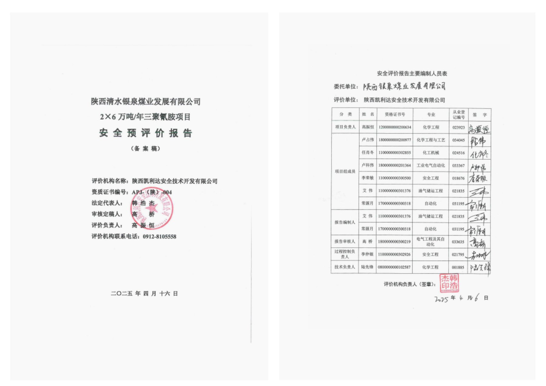 KLDAP[2024]-2.21 陜西清水銀泉煤業(yè)發(fā)展有限公司2×6萬(wàn)噸/年三聚氰胺項(xiàng)目安全預(yù)評(píng)價(jià)報(bào)告