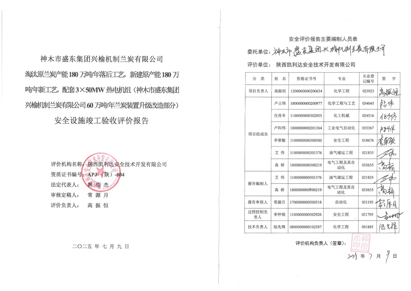 KLDAP-[2025]-2.5神木市盛東集團(tuán)興榆機(jī)制蘭炭有限公司60萬(wàn)噸年蘭炭裝置升級(jí)改造部分設(shè)施竣工驗(yàn)收評(píng)價(jià)報(bào)告
