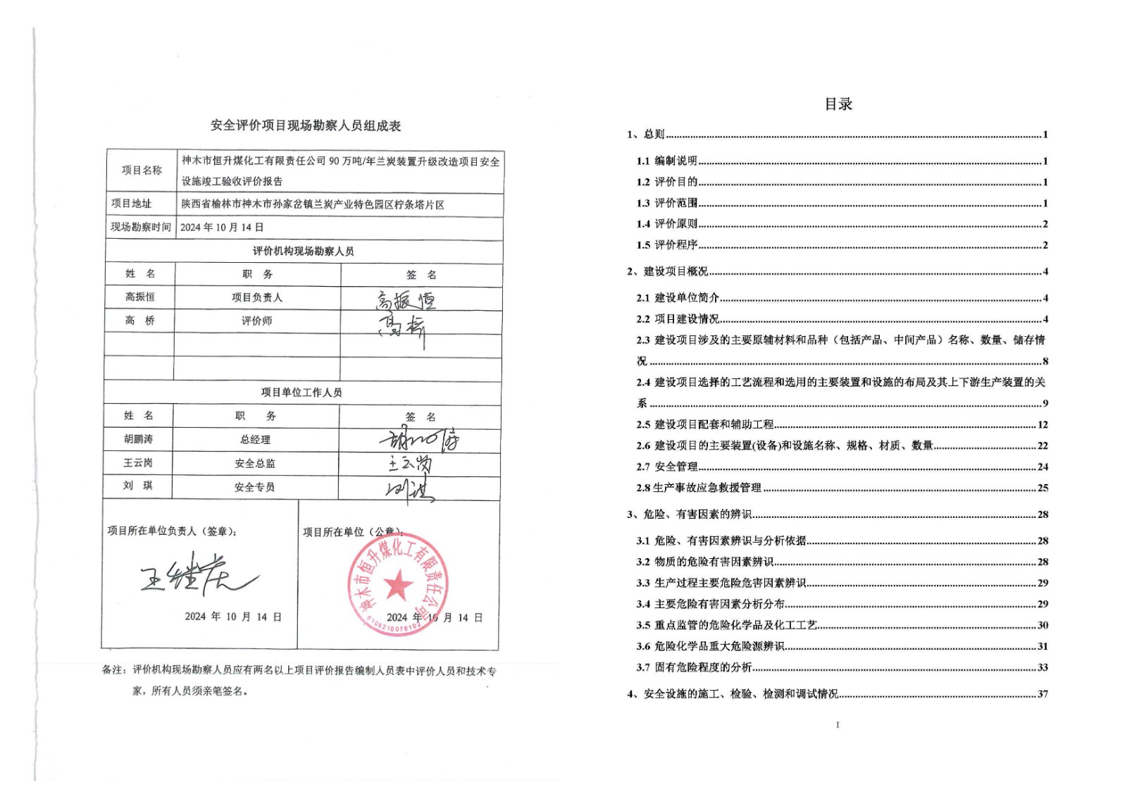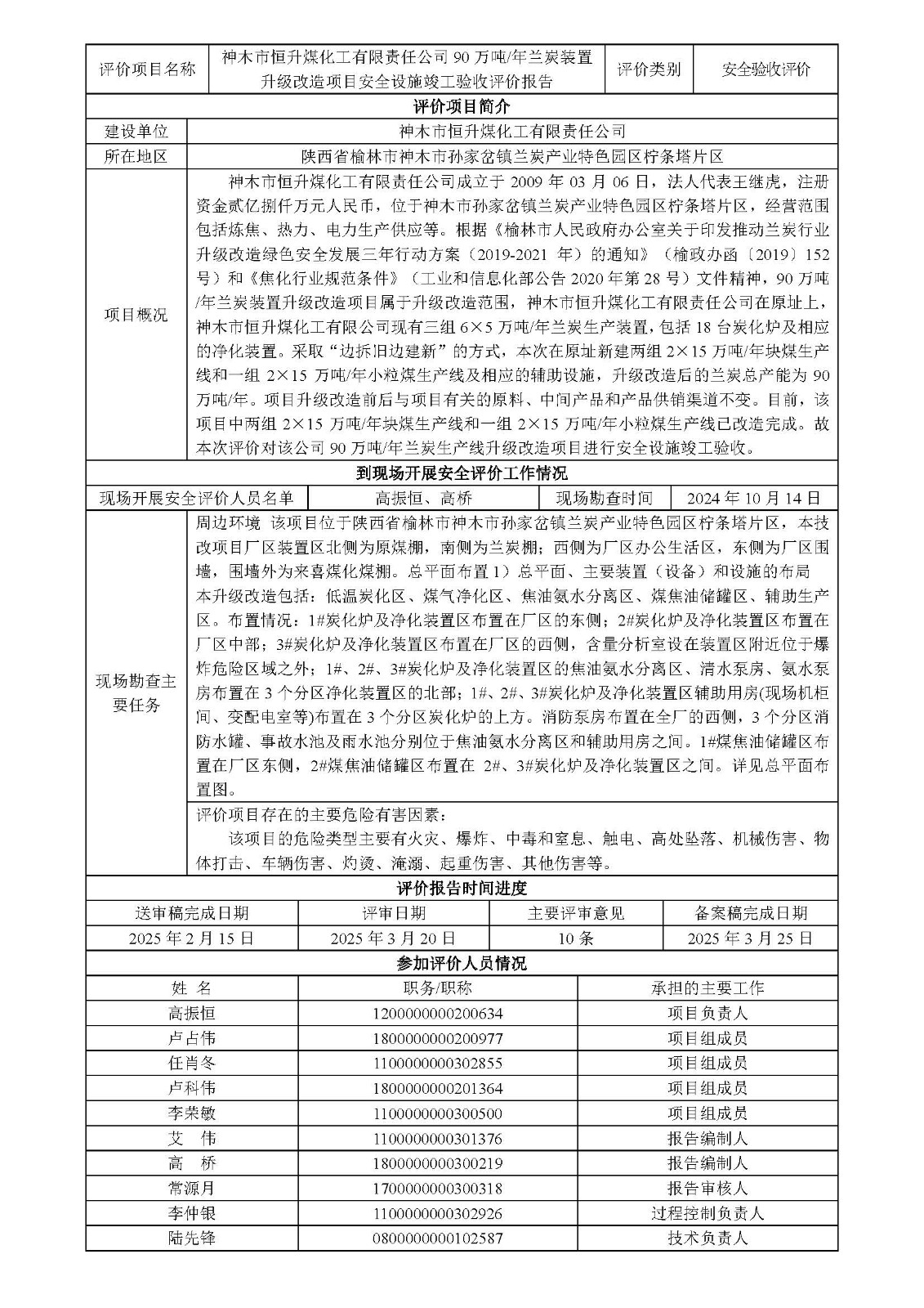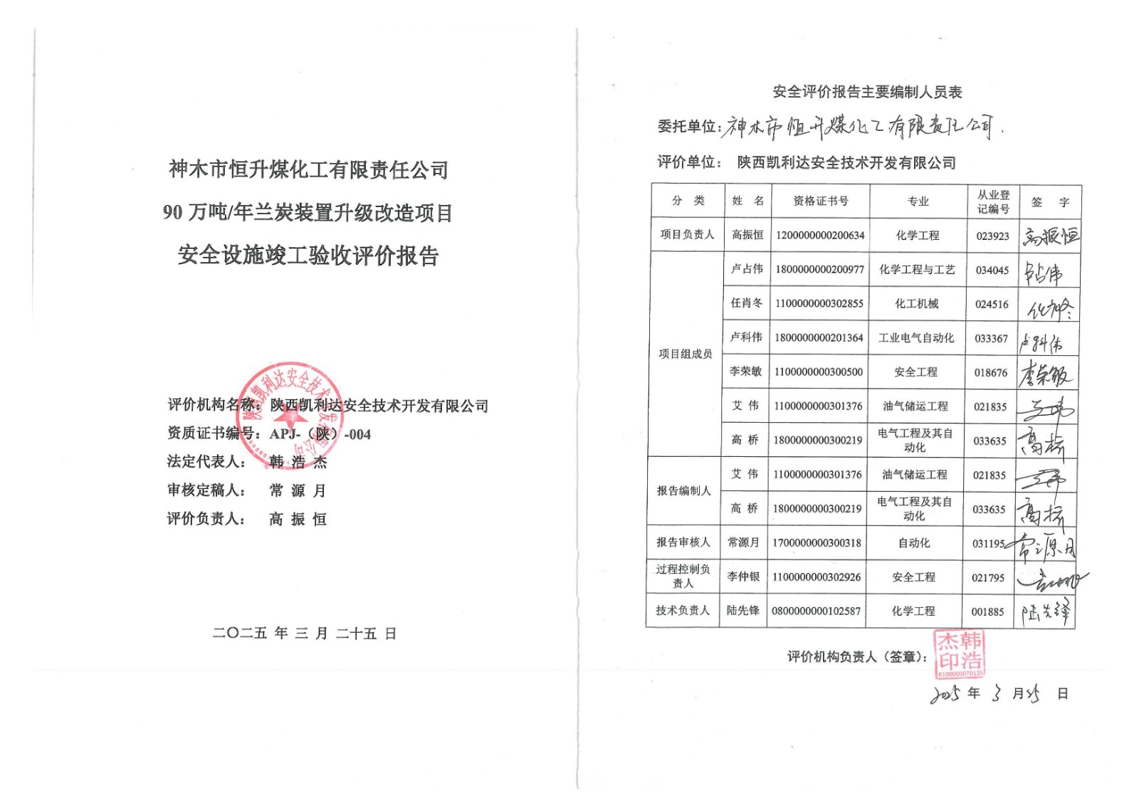 KLDAP-[2024]-2.23神木市恒升煤化工有限責(zé)任公司90萬噸年蘭炭裝置升級改造安全設(shè)施竣工驗收評價報告