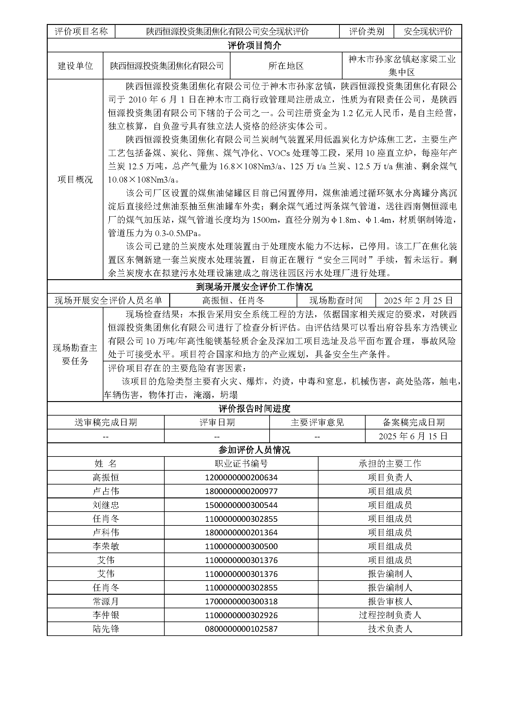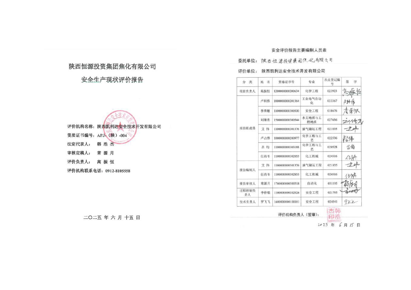 KLDAP-[2025]-2.6陜西恒源投資集團(tuán)焦化有限公司安全現(xiàn)狀評(píng)價(jià)報(bào)告