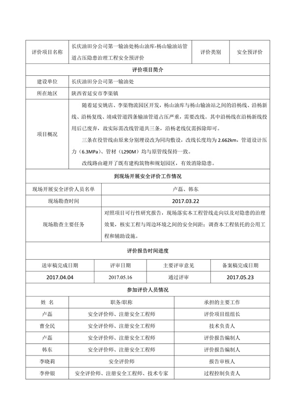 長(zhǎng)慶油田分公司第一輸油處楊山油庫(kù)-楊山輸油站管道占?jí)弘[患治理