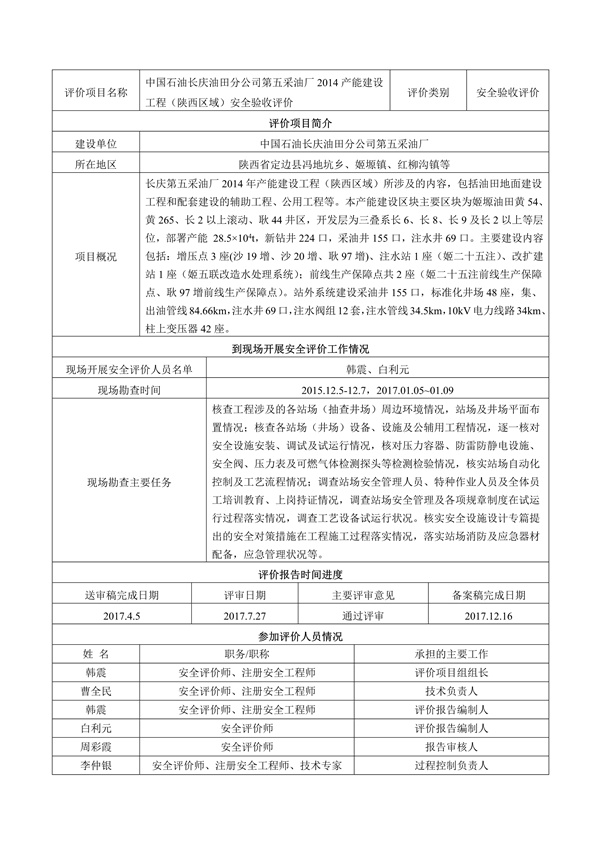 中國石油長慶油田分公司第五采油廠2014產(chǎn)能建設(shè)工程(陜西區(qū)域)