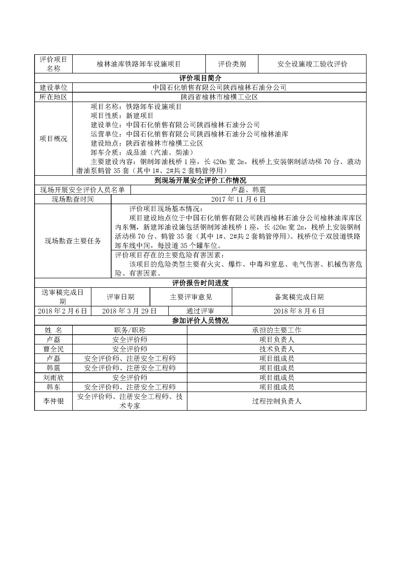 中國石化銷售有限公司陜西榆林石油分公司榆林油庫鐵路卸車設(shè)施項目安全設(shè)施竣工驗收評價