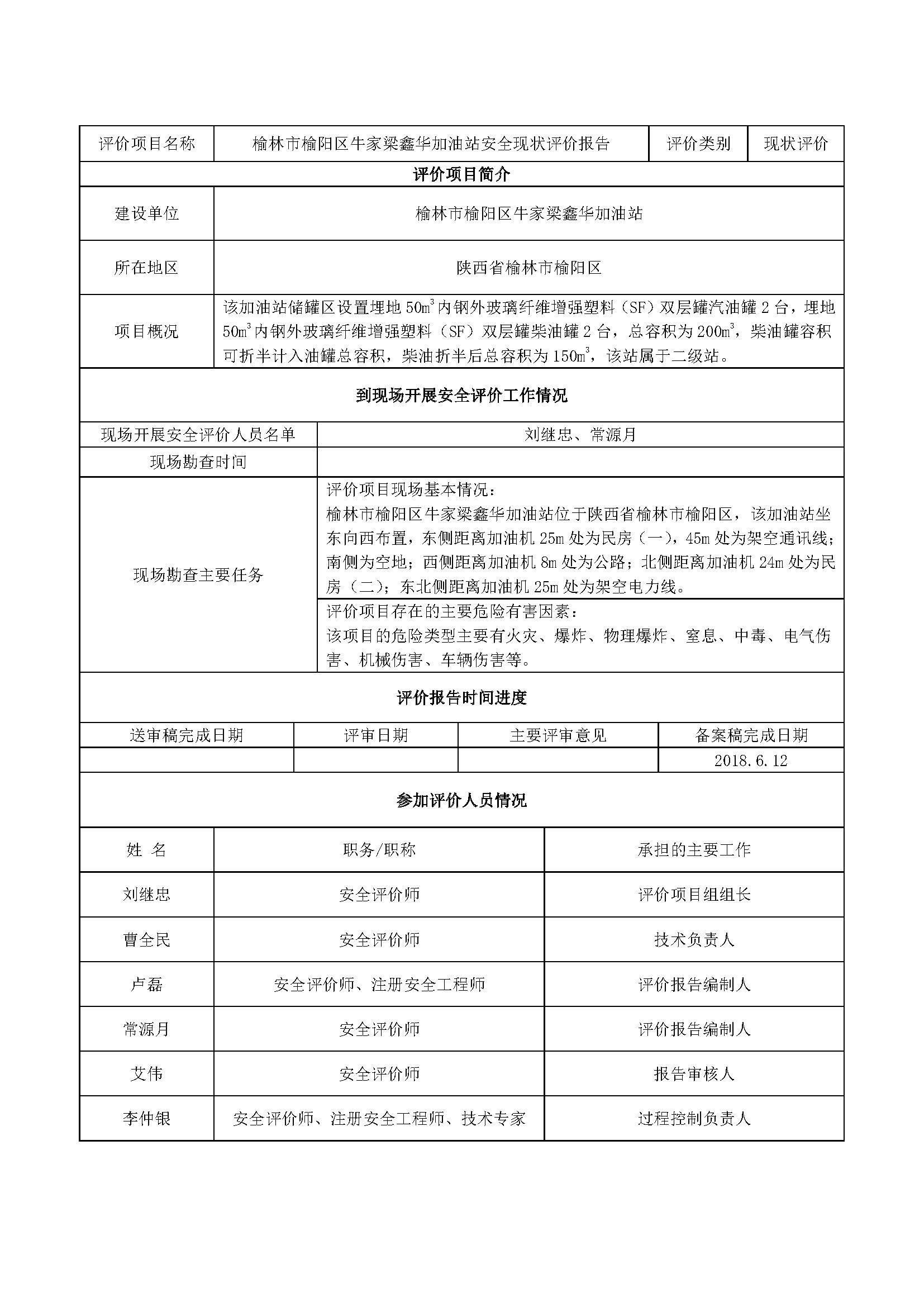 榆林市榆陽區(qū)牛家梁鑫華加油站安全現(xiàn)狀評價