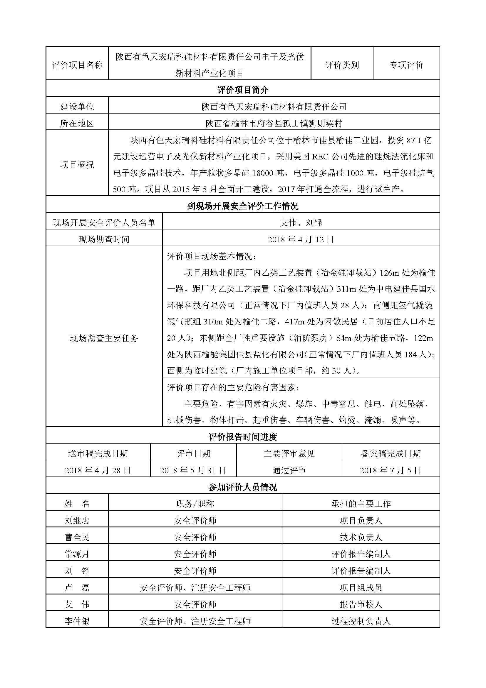 陜西有色天宏瑞科硅材料有限責(zé)任公司電子及光伏新材料產(chǎn)業(yè)化項(xiàng)目危險(xiǎn)化學(xué)品重大危險(xiǎn)源安