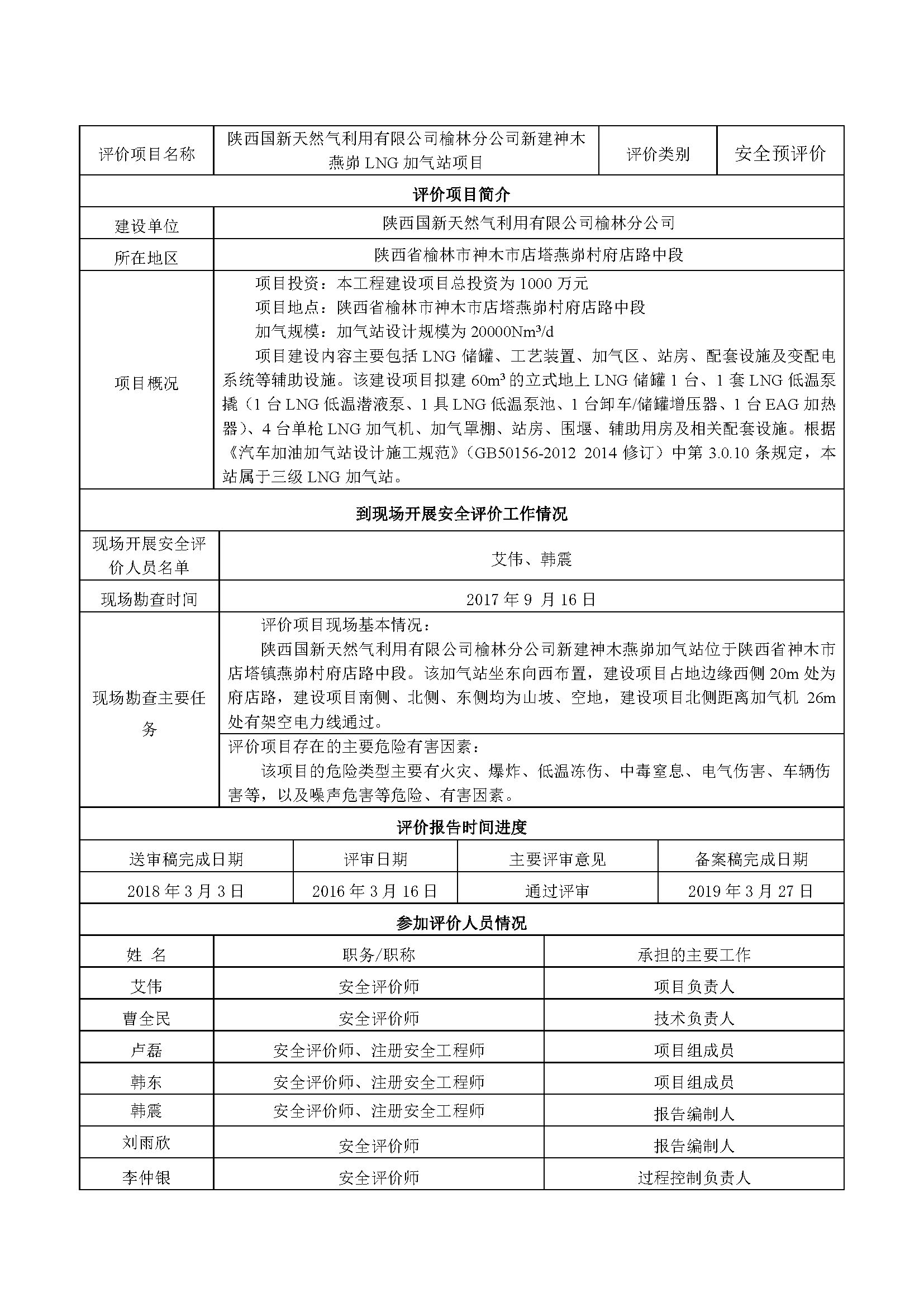 陜西國新天然氣利用有限公司榆林分公司新建神木燕峁LNG加氣站項(xiàng)目安全預(yù)評價(jià)