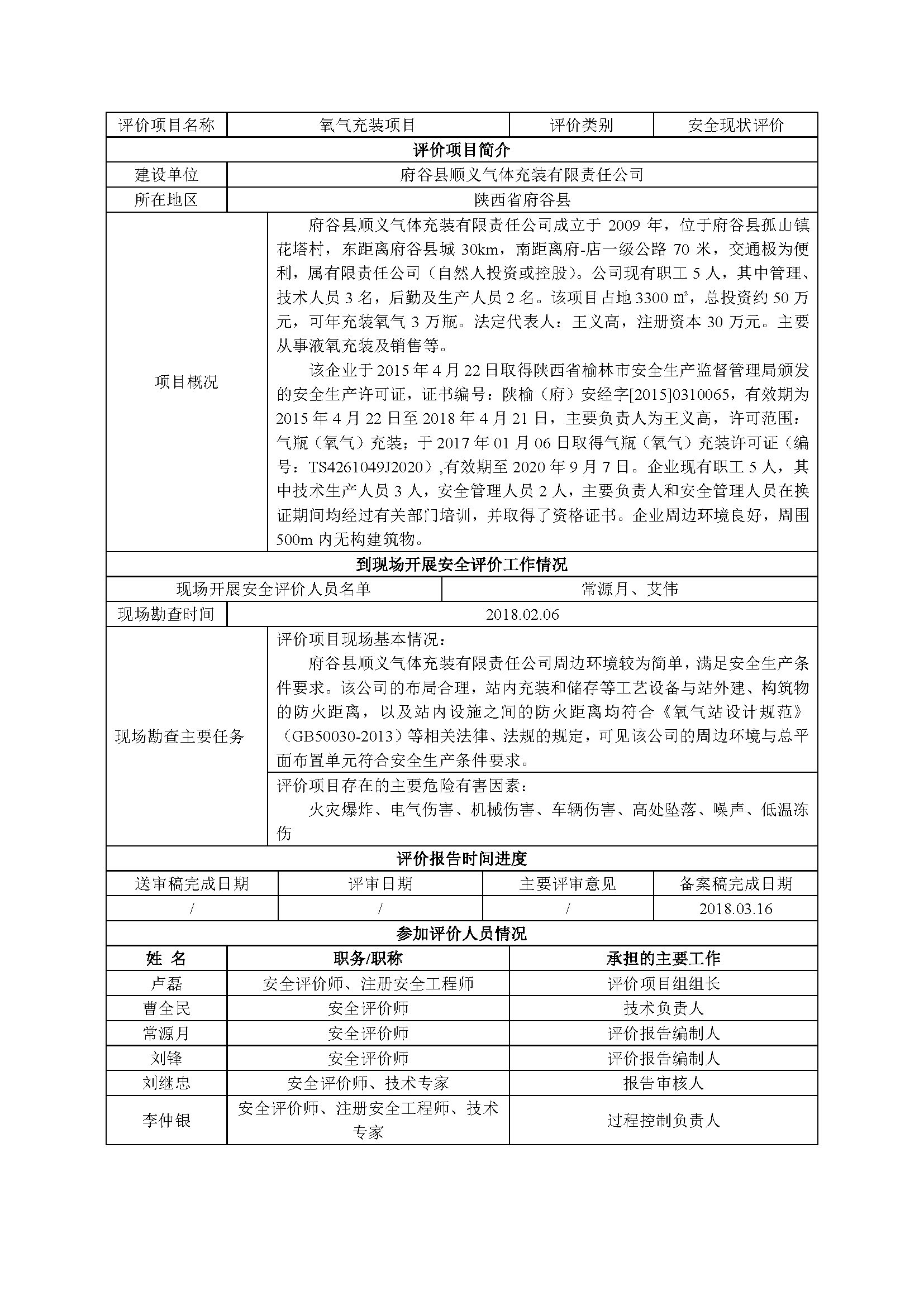 府谷縣順義氣體充裝有限責任公司氧氣充裝項目安全現(xiàn)狀評價