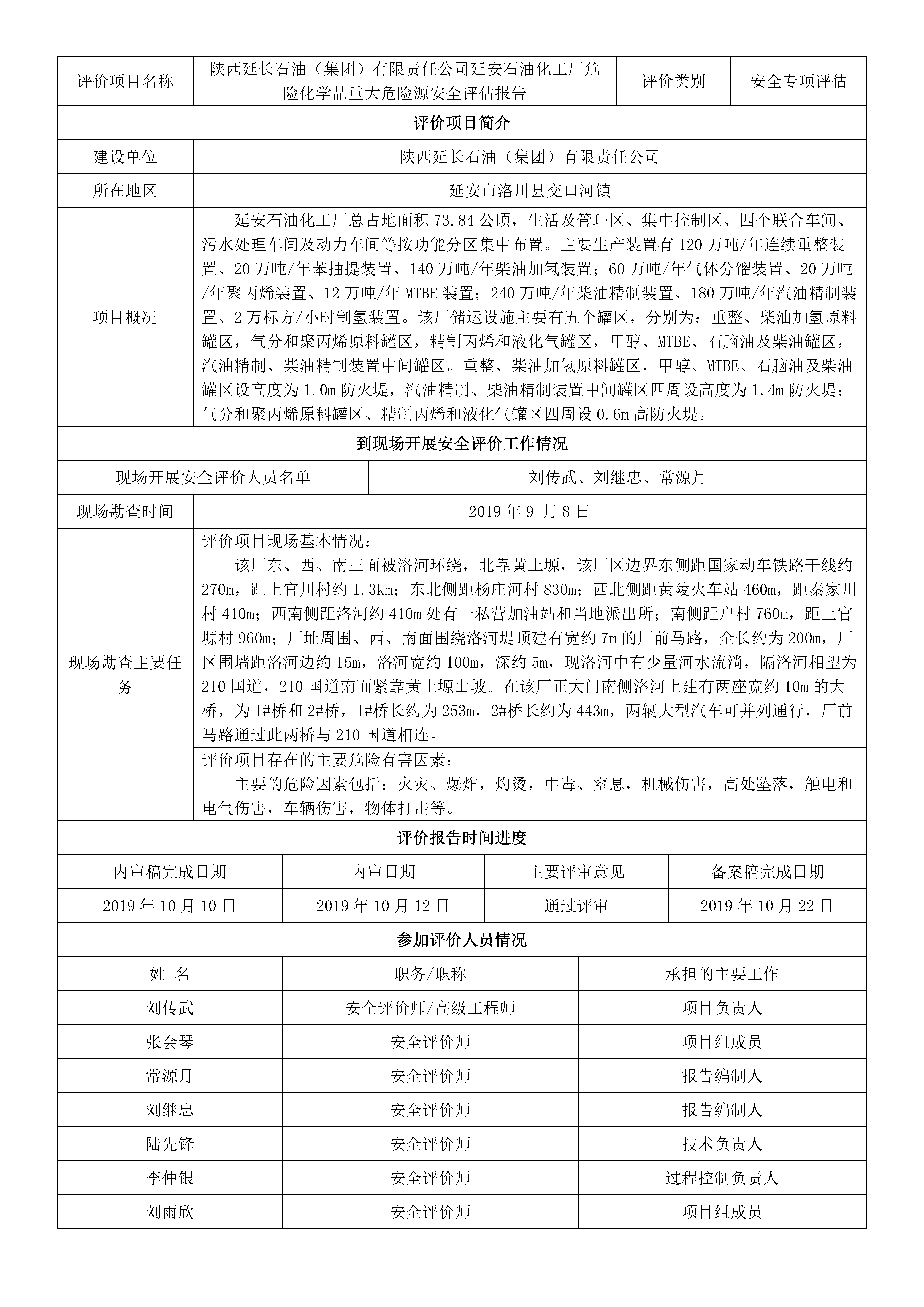 KLDAP[2019]-?;?重-12 陜西延長(zhǎng)石油(集團(tuán))有限責(zé)任公司延安石油化工廠危險(xiǎn)化學(xué)品重大危險(xiǎn)源安全評(píng)估報(bào)告