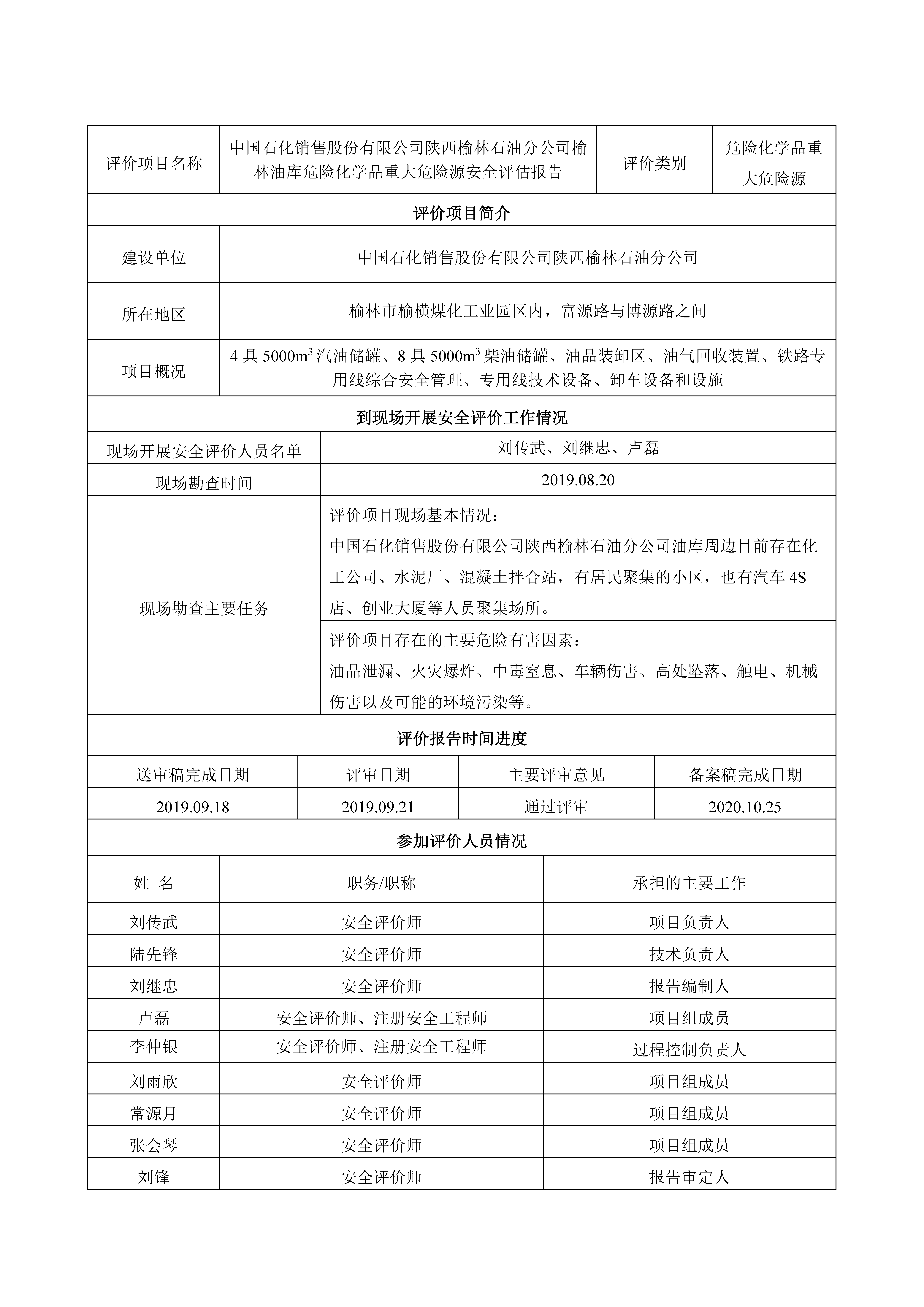 KLDAP[2019]-?;?重-11 中國(guó)石化銷售股份有限公司陜西榆林石油分公司重大危險(xiǎn)源評(píng)價(jià)