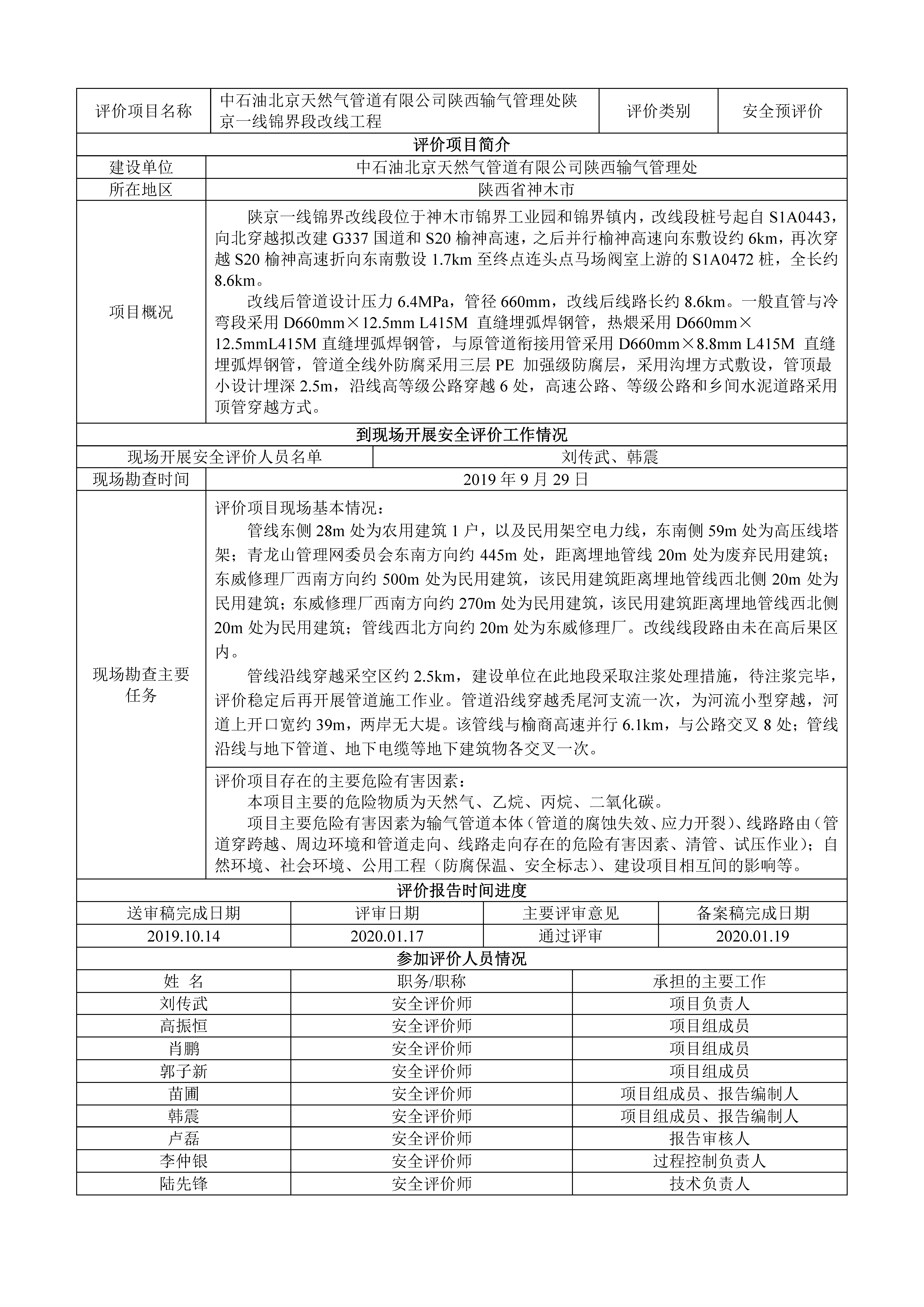 KLDAP[2019]-?;?預(yù)-9 中石油北京天然氣管道有限公司陜西輸氣管理處陜京一線神木市錦界鎮(zhèn)遷改工程安全預(yù)評(píng)價(jià)報(bào)告