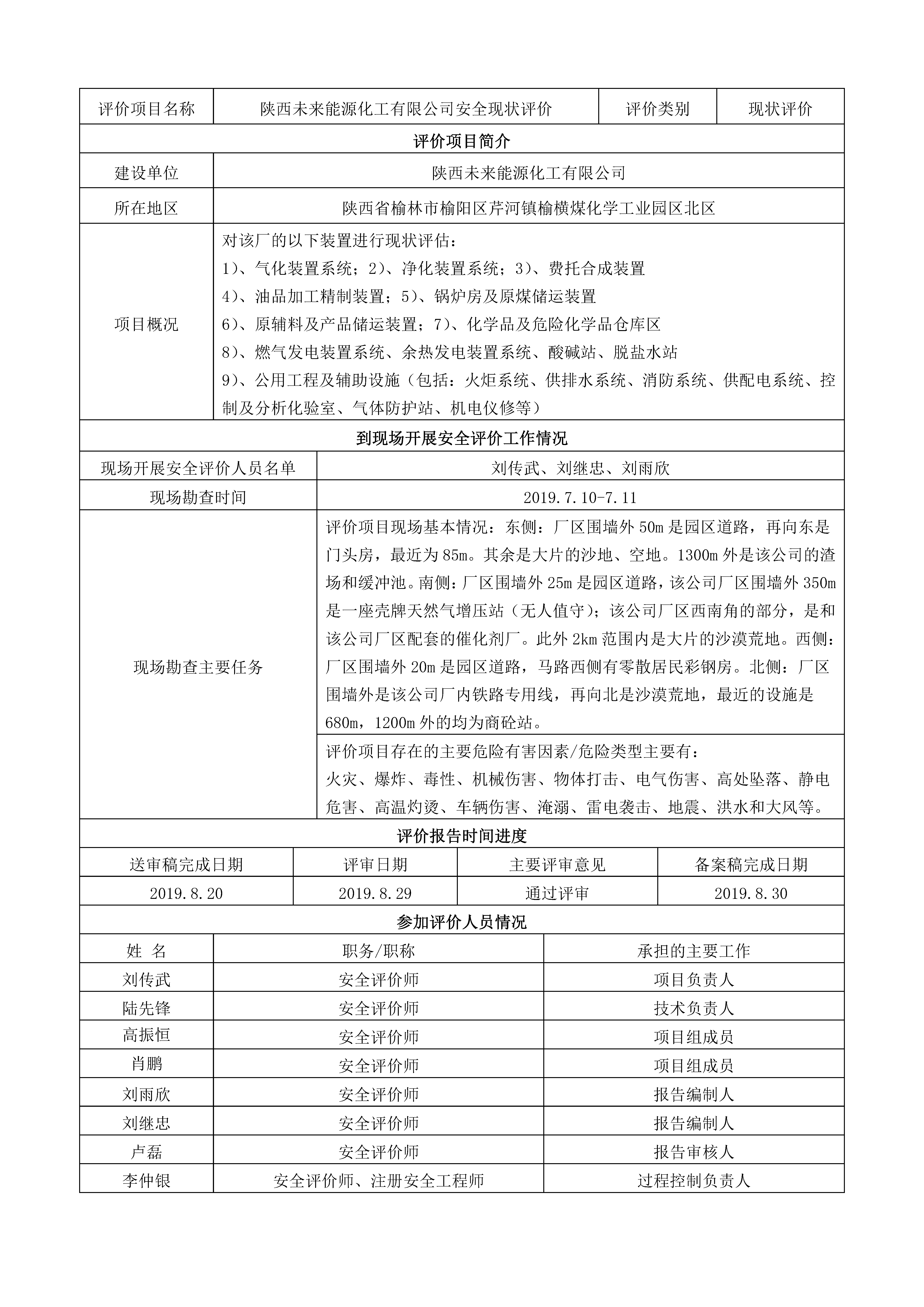 KLDAP[2019]-危化-現(xiàn)-9 陜西未來(lái)能源化工有限公司煤制油項(xiàng)目安全現(xiàn)狀評(píng)價(jià)