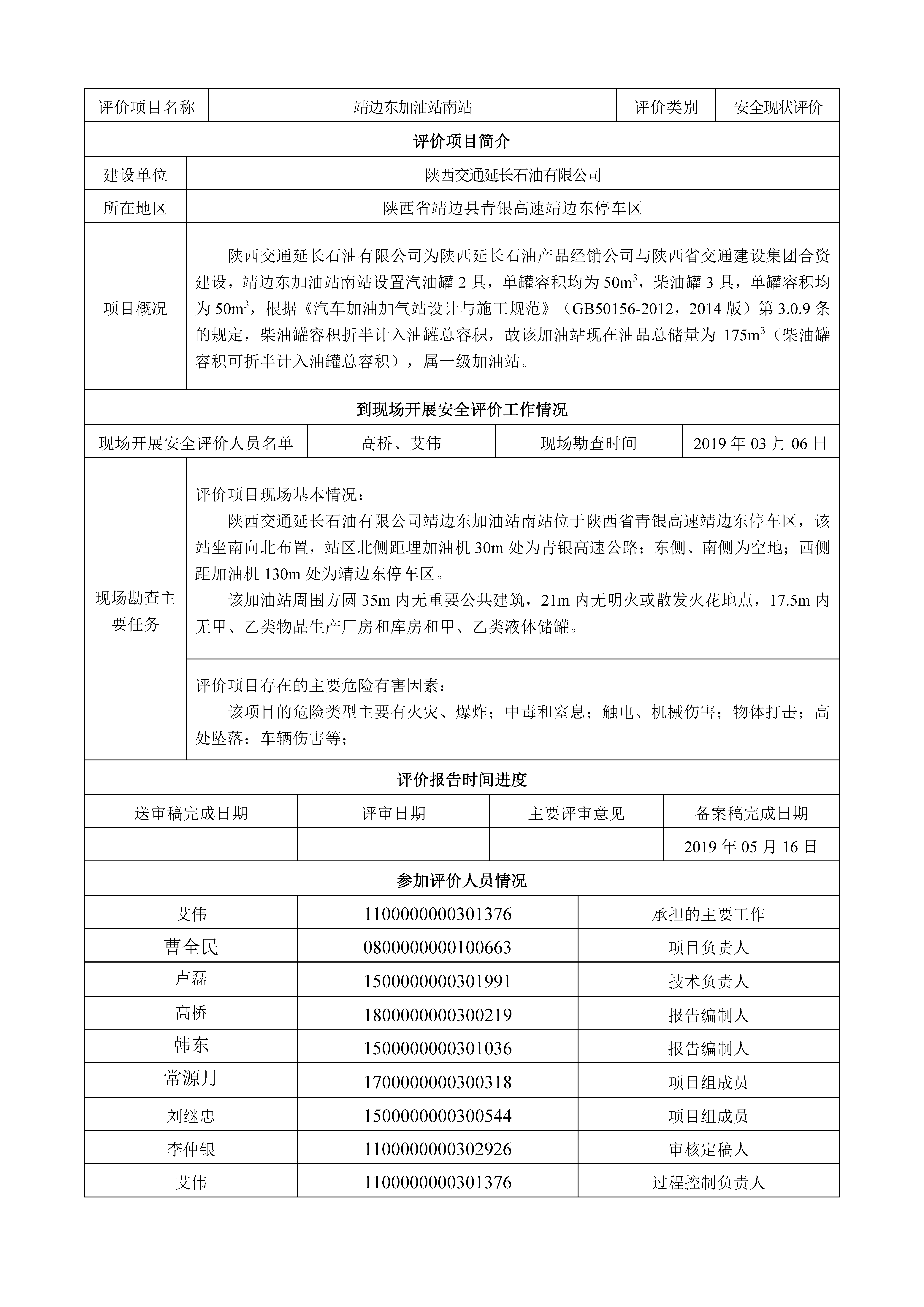KLDAP[2019]-危化-現(xiàn)-4 陜西交通延長(zhǎng)石油有限公司靖邊東加油站南站安全現(xiàn)狀評(píng)價(jià)