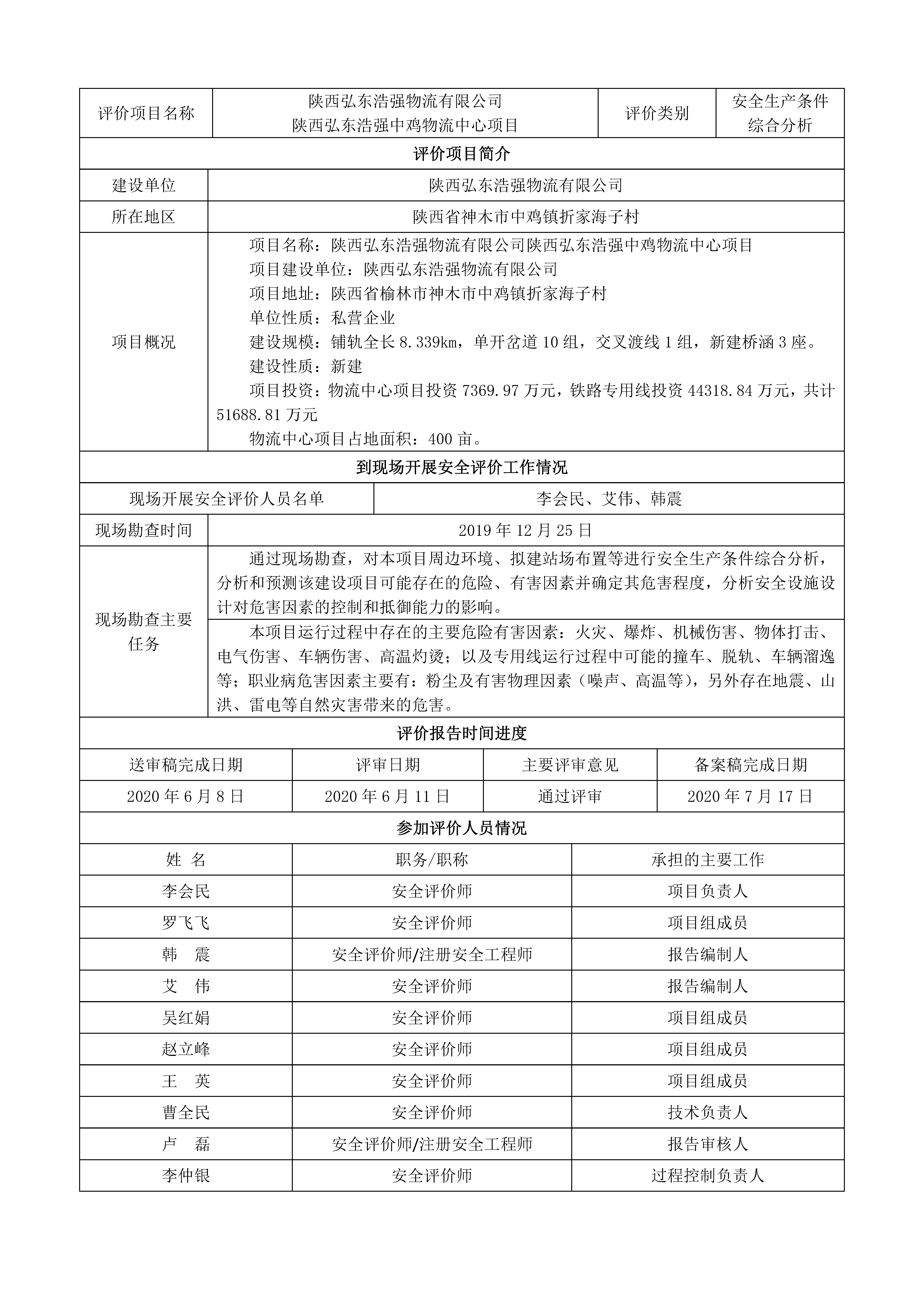 KLDAP[2020]-工貿(mào)-預(yù)-1 陜西弘東浩強(qiáng)中雞物流中心項(xiàng)目安全生產(chǎn)條件綜合分析