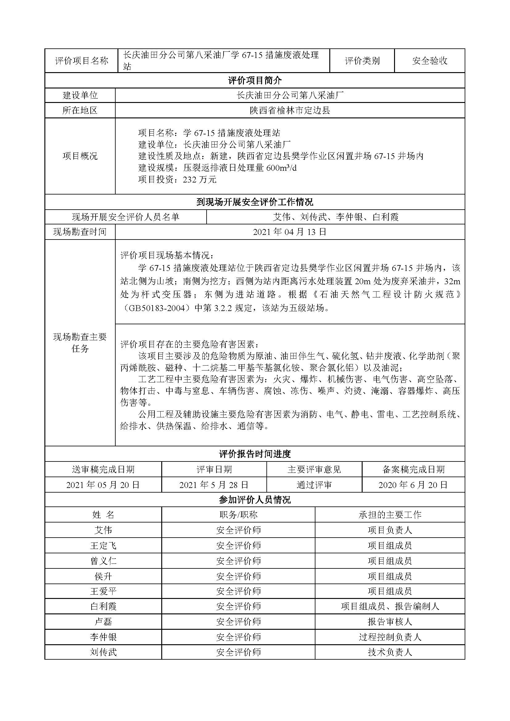 KLDAP[2020]-非煤-驗(yàn)-2 中國(guó)石油天然氣股份有限公司長(zhǎng)慶油田分公司第八采油廠學(xué)67-15措施廢液處理站安全驗(yàn)收評(píng)價(jià)