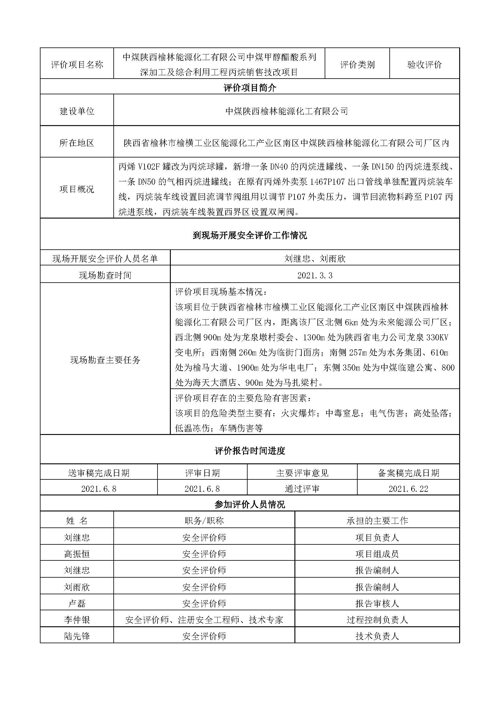 KLDAP[2021]-?;?驗(yàn)-2 中煤陜西榆林能源化工有限公司中煤甲醇醋酸系列深加工及綜合利用工程丙烷銷售技改項(xiàng)目安全設(shè)施竣工驗(yàn)收評價(jià)