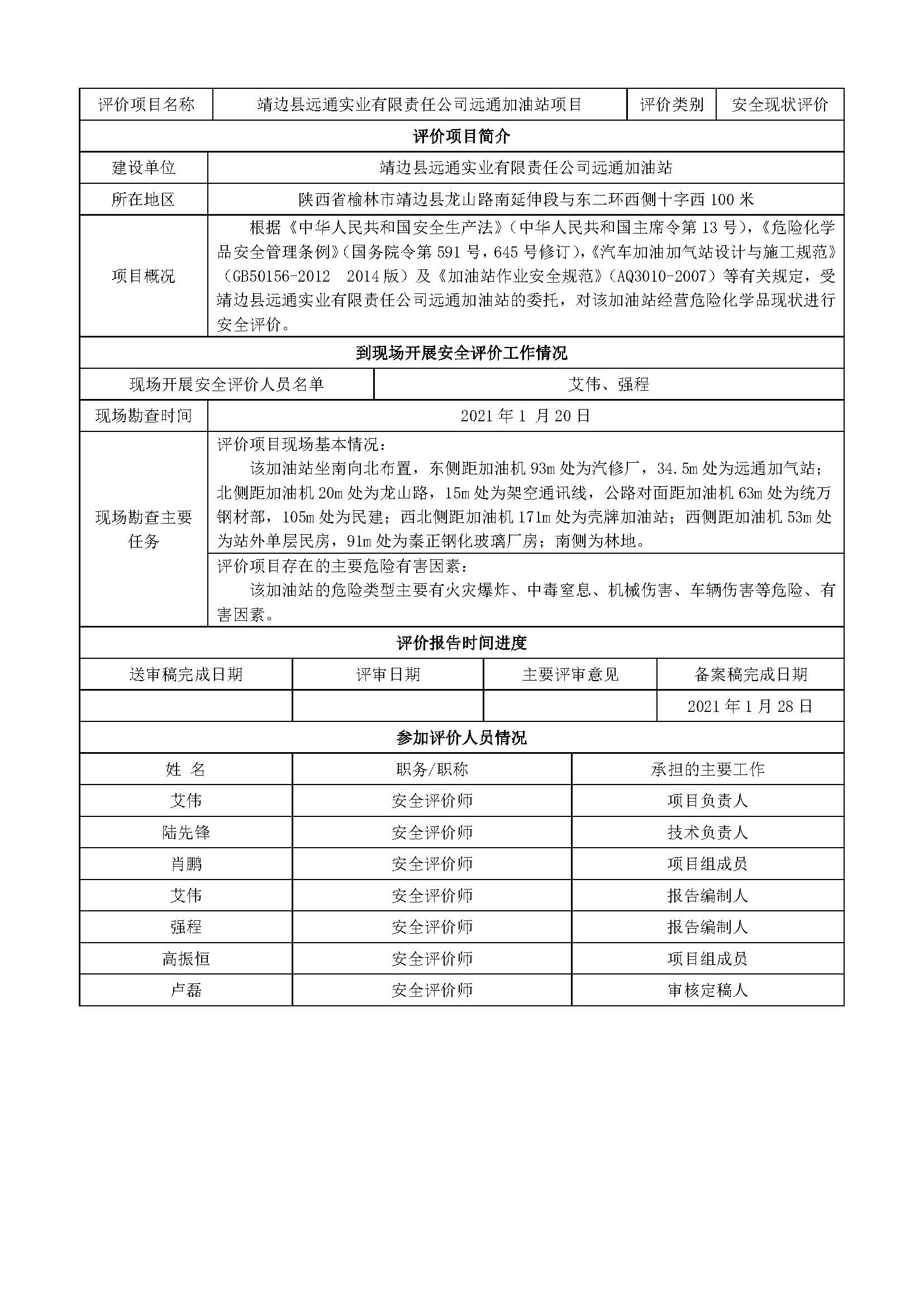 KLDAP[2021]-危化-現(xiàn)-1 靖邊縣遠通實業(yè)有限公司遠通加油站安全現(xiàn)狀評價