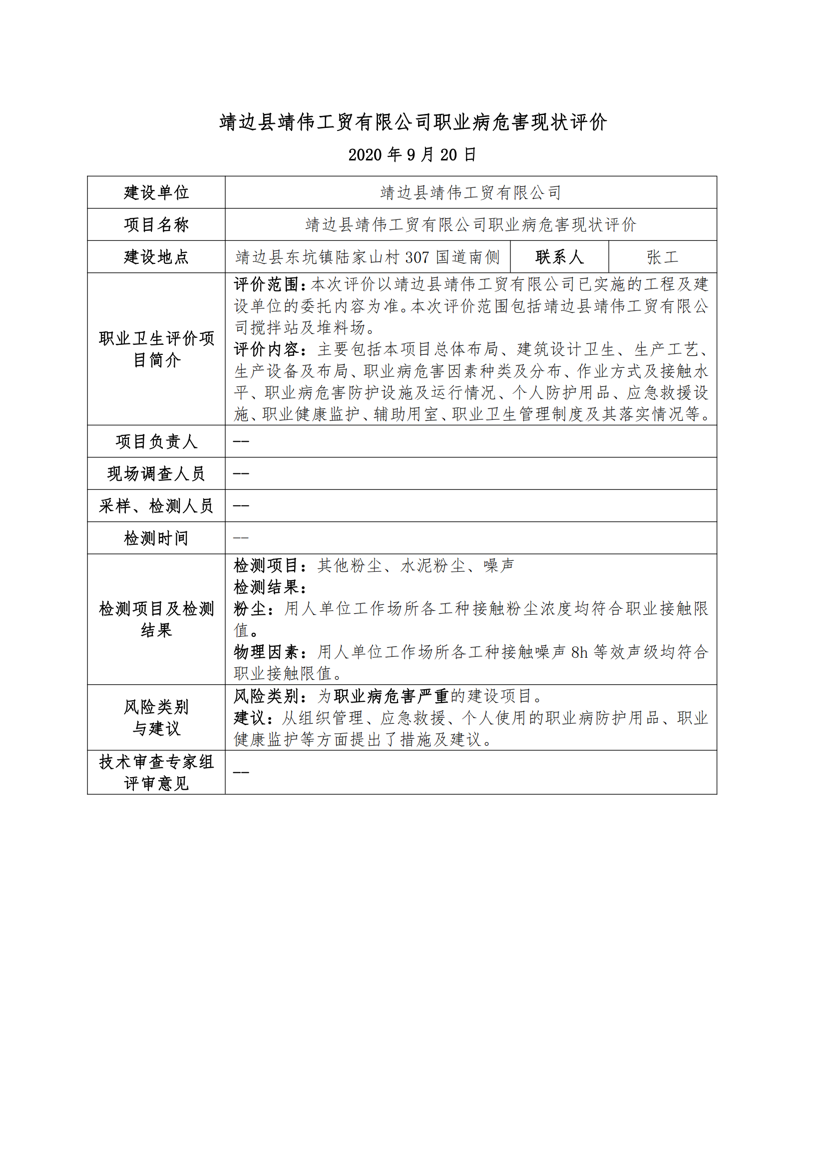 靖邊縣靖偉工貿(mào)有限公司職業(yè)病危害現(xiàn)狀評價