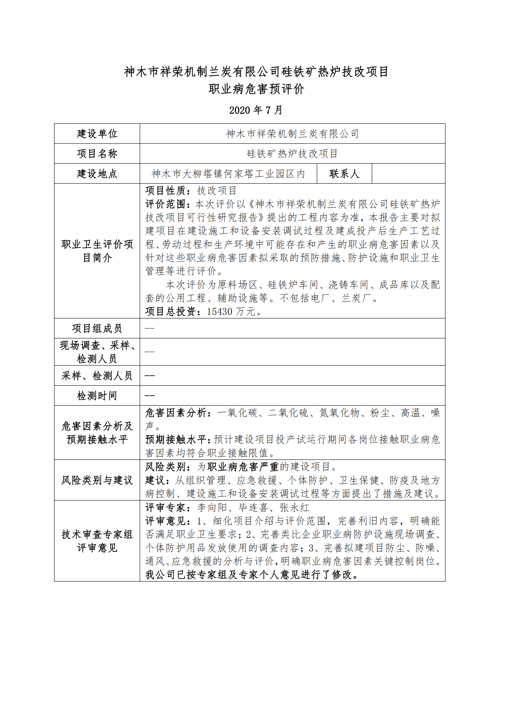 神木市祥榮機制蘭炭有限公司硅鐵礦熱爐技改項目職業(yè)病危害預(yù)評價