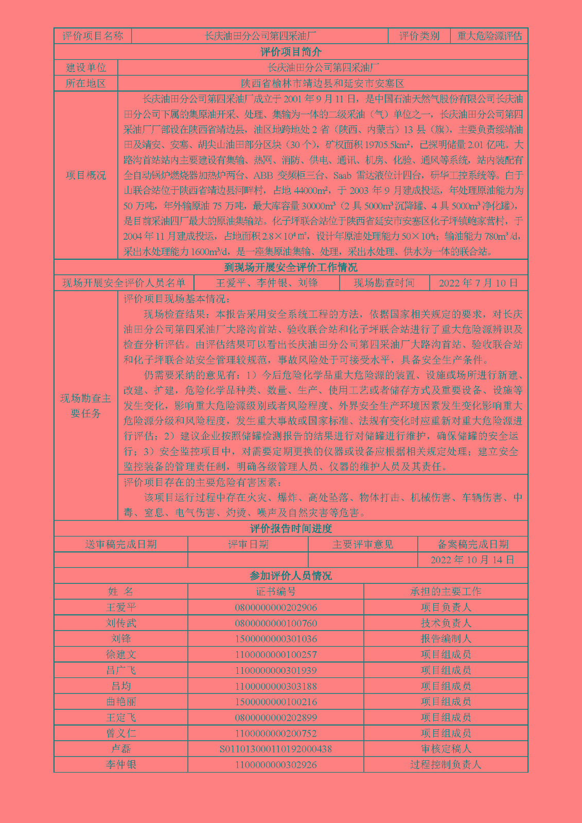 KLDAP[2022]-4.10 長(zhǎng)慶油田分公司第四采油廠重大危險(xiǎn)源評(píng)估