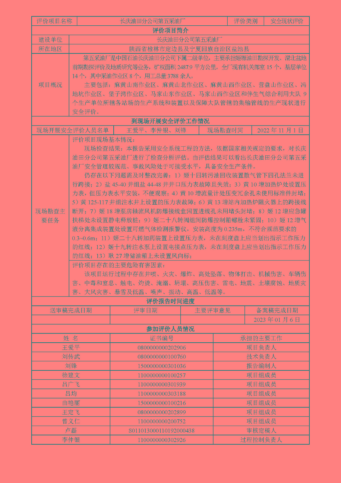KLDAP[2022]-4.16 長慶油田分公司第五采油廠安全現(xiàn)狀評價