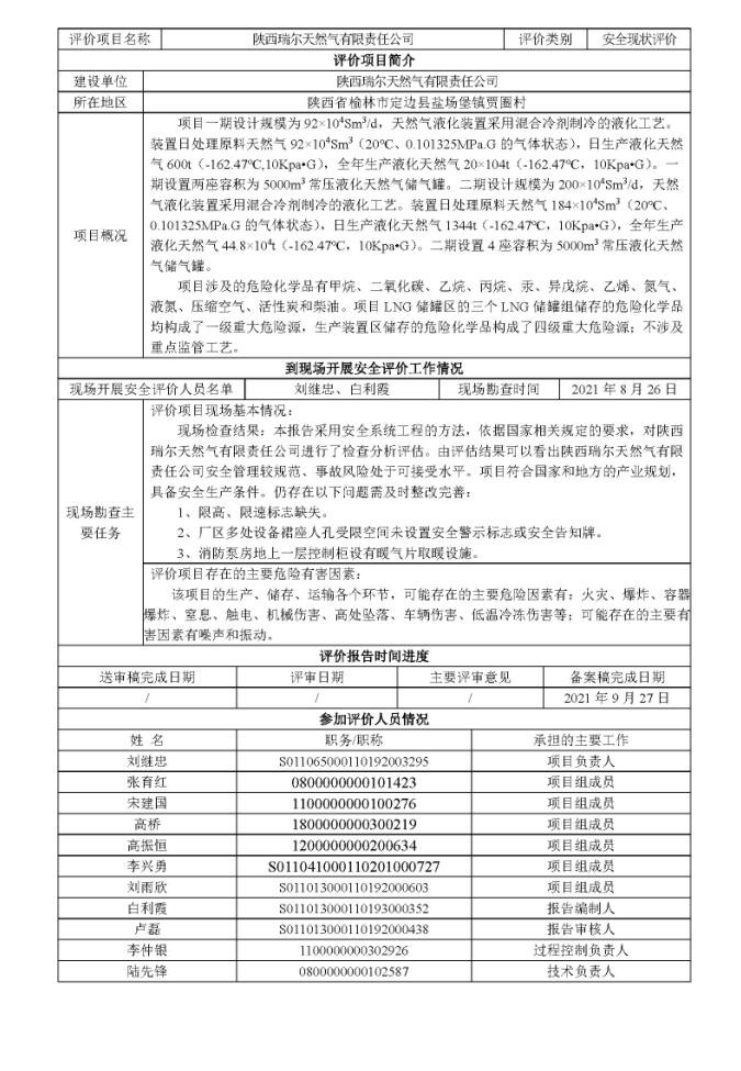 KLDAP[2021]-(現(xiàn))-12 陜西瑞爾天然氣有限責任公司安全現(xiàn)狀