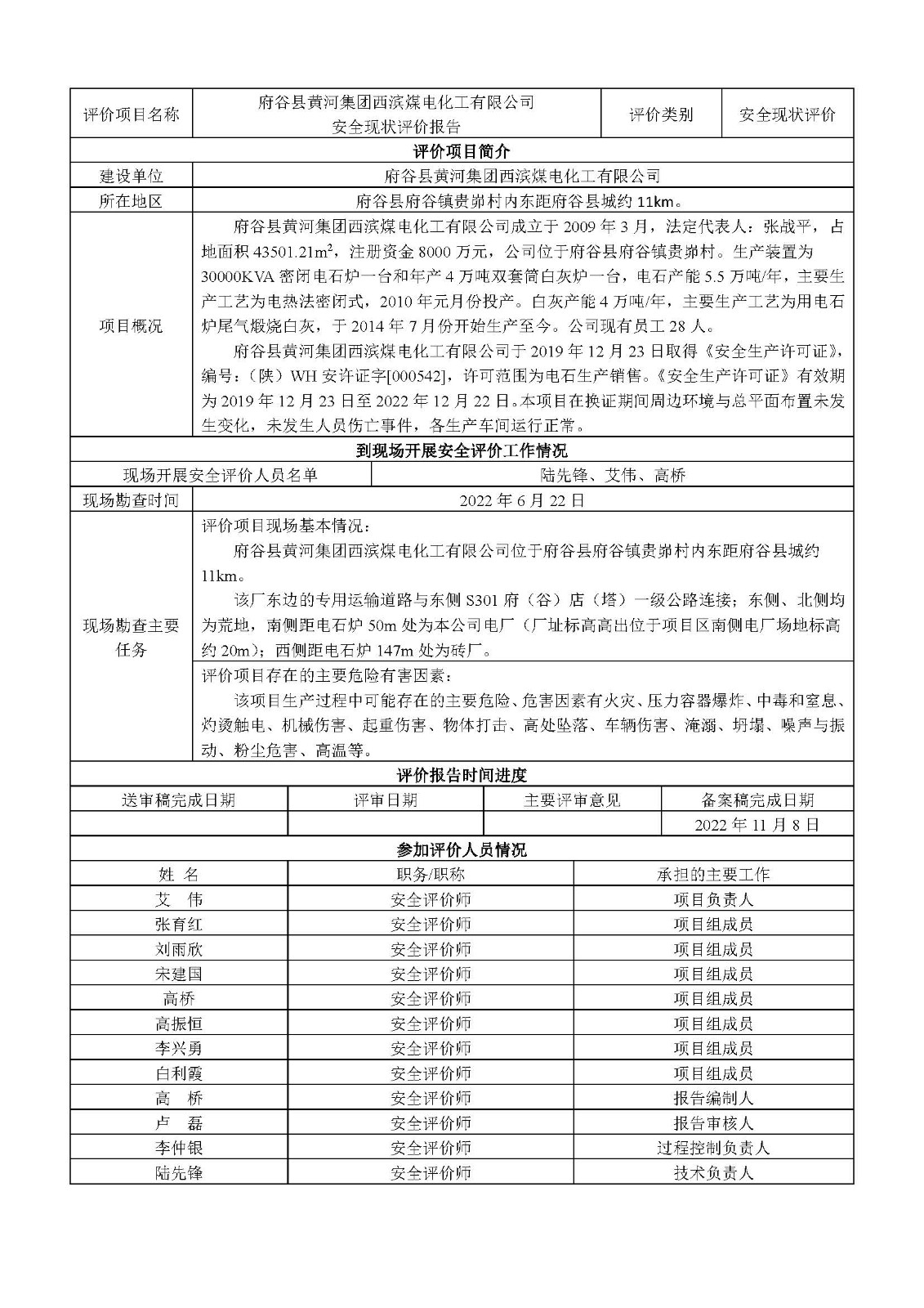 KLDAP[2022]-3.6 府谷縣黃河集團西濱煤電化工有限公司安全現(xiàn)狀評價