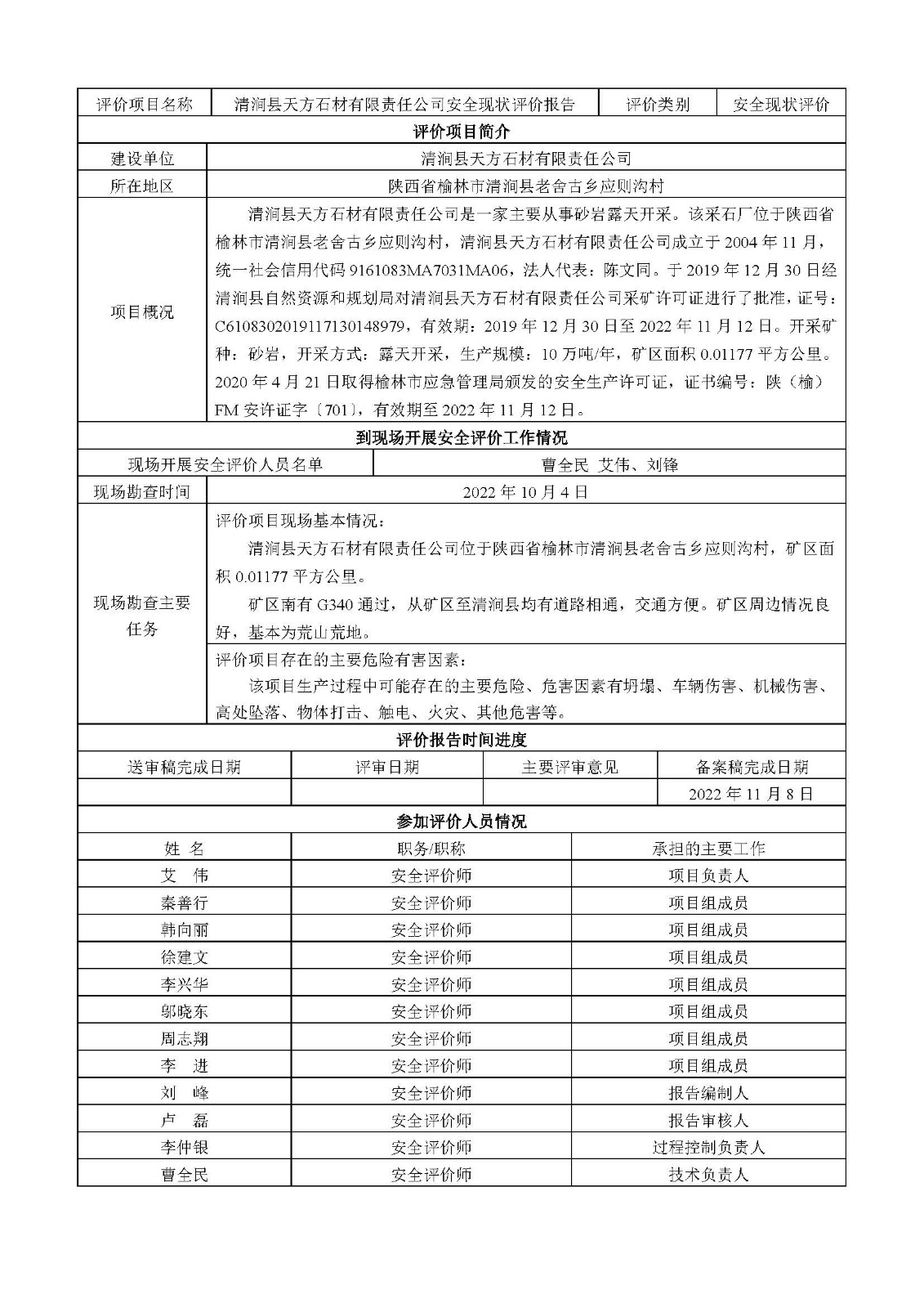KLDAP[2022]-3.13 清澗縣天方石材有限責(zé)任公司安全現(xiàn)狀評價