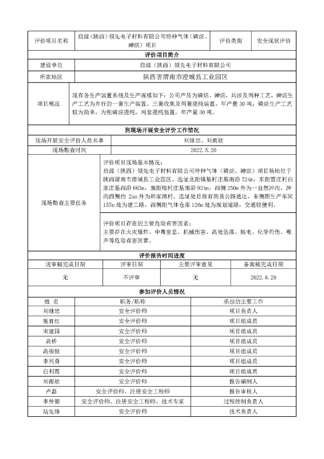 KLDAP-[2022]-2.12 啟源(陜西)領先電子材料有限公司特種氣體(磷烷、砷烷)項目安全現狀評價