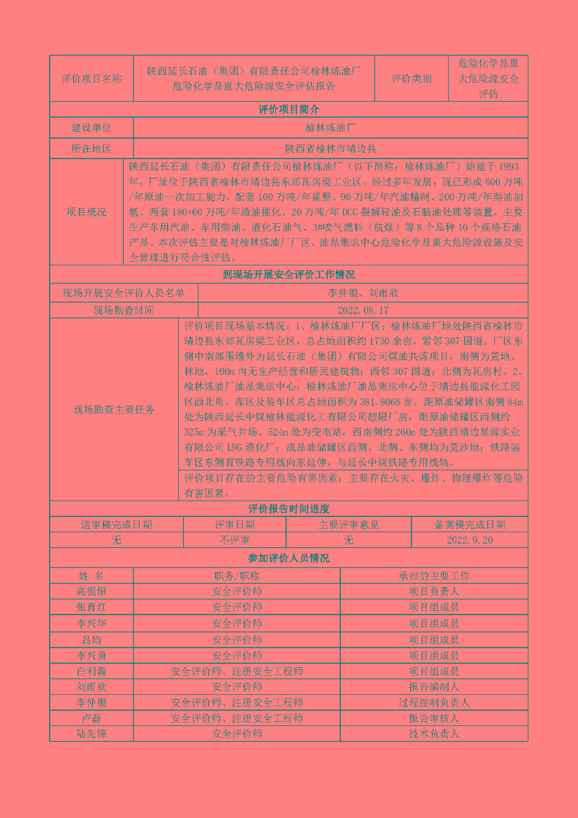 KLDAP-[2022]-2.15 陜西延長石油(集團(tuán))有限責(zé)任公司榆林煉油廠危險(xiǎn)化學(xué)品重大危險(xiǎn)源評(píng)估