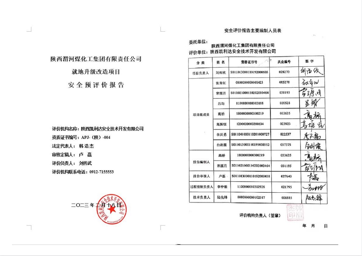 KLDAP[2023]-2.4 陜西渭河煤化工集團有限責任公司就地升級改造項目安全預評價