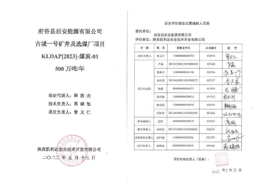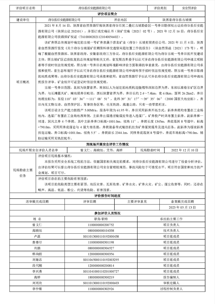 KLDAP[2023]-煤炭-預-1 府谷縣后安能源有限公司安全預評價