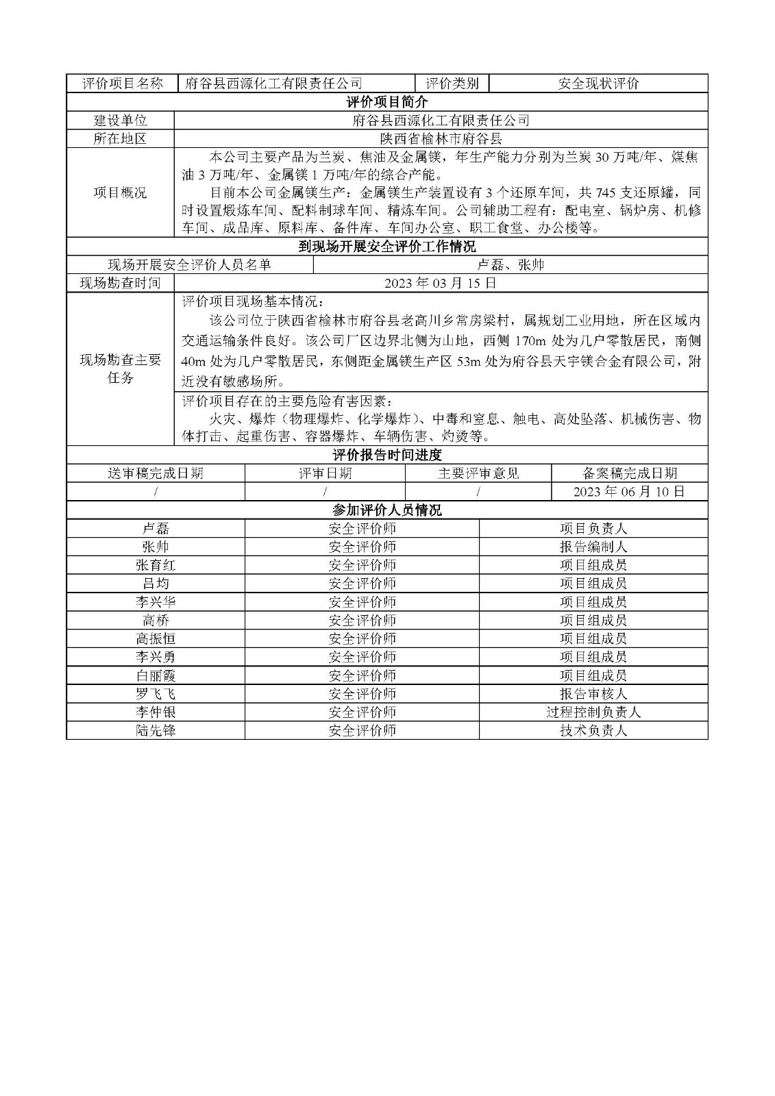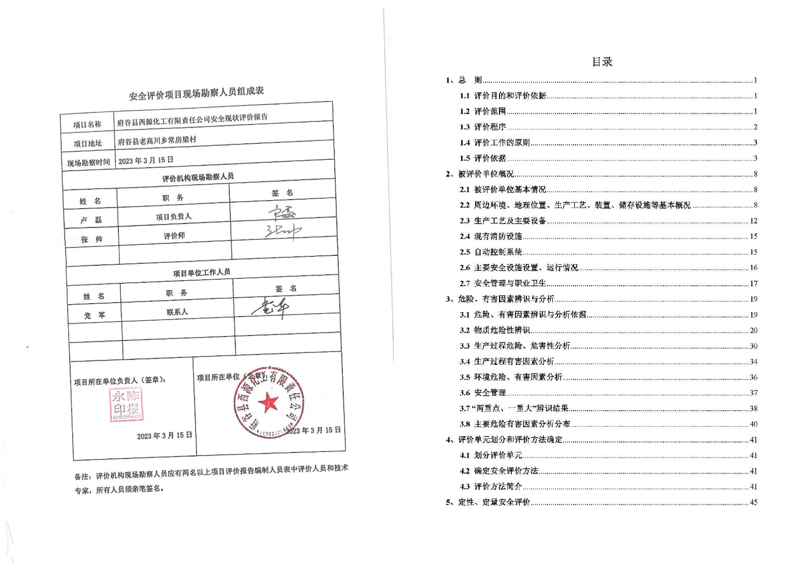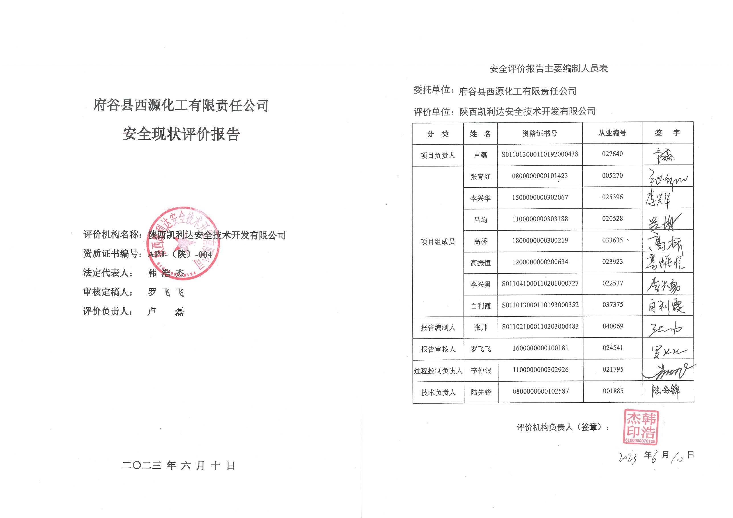 KLDAP[2023]-1.3 府谷縣西源化工有限責任公司安全現(xiàn)狀評價