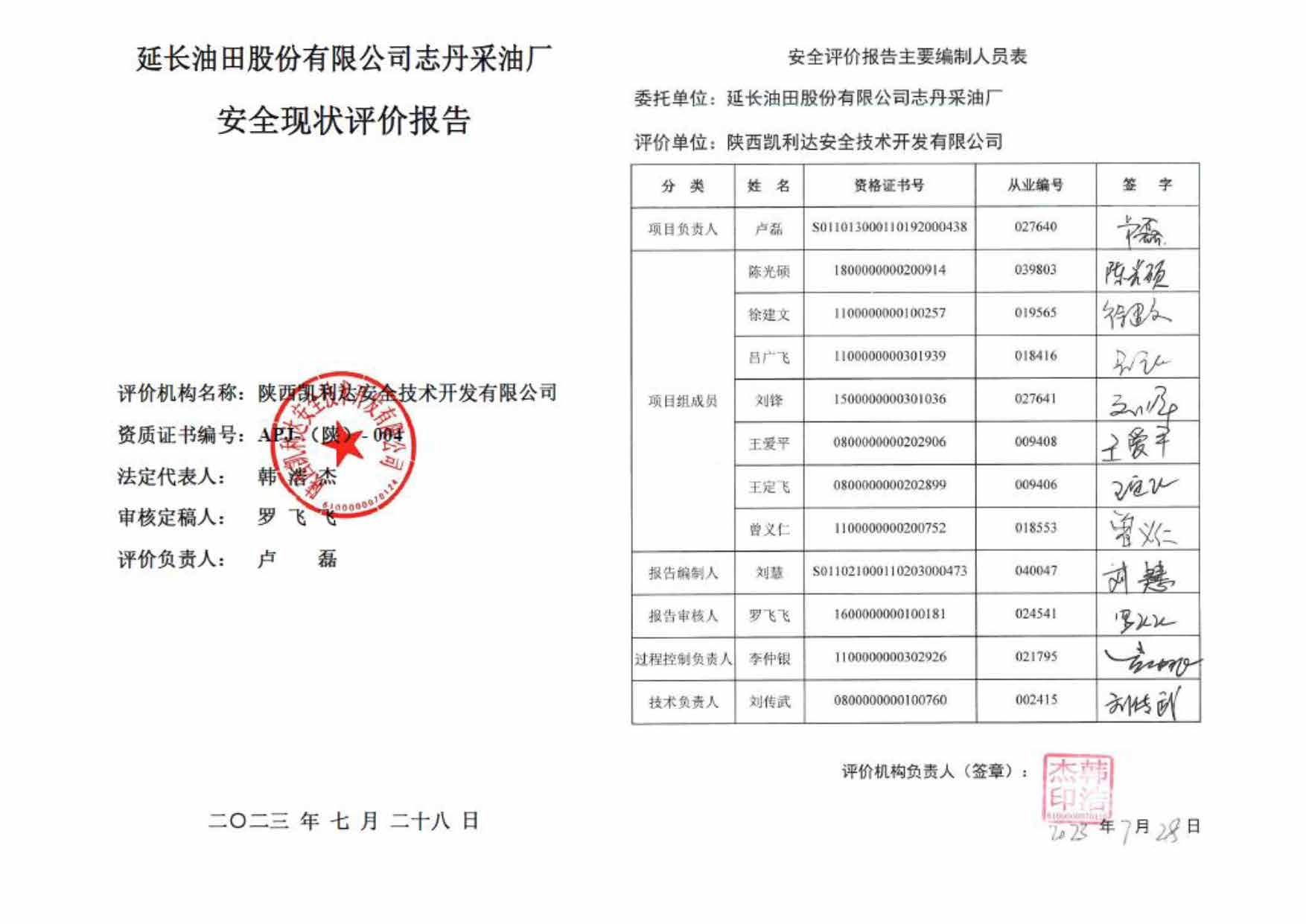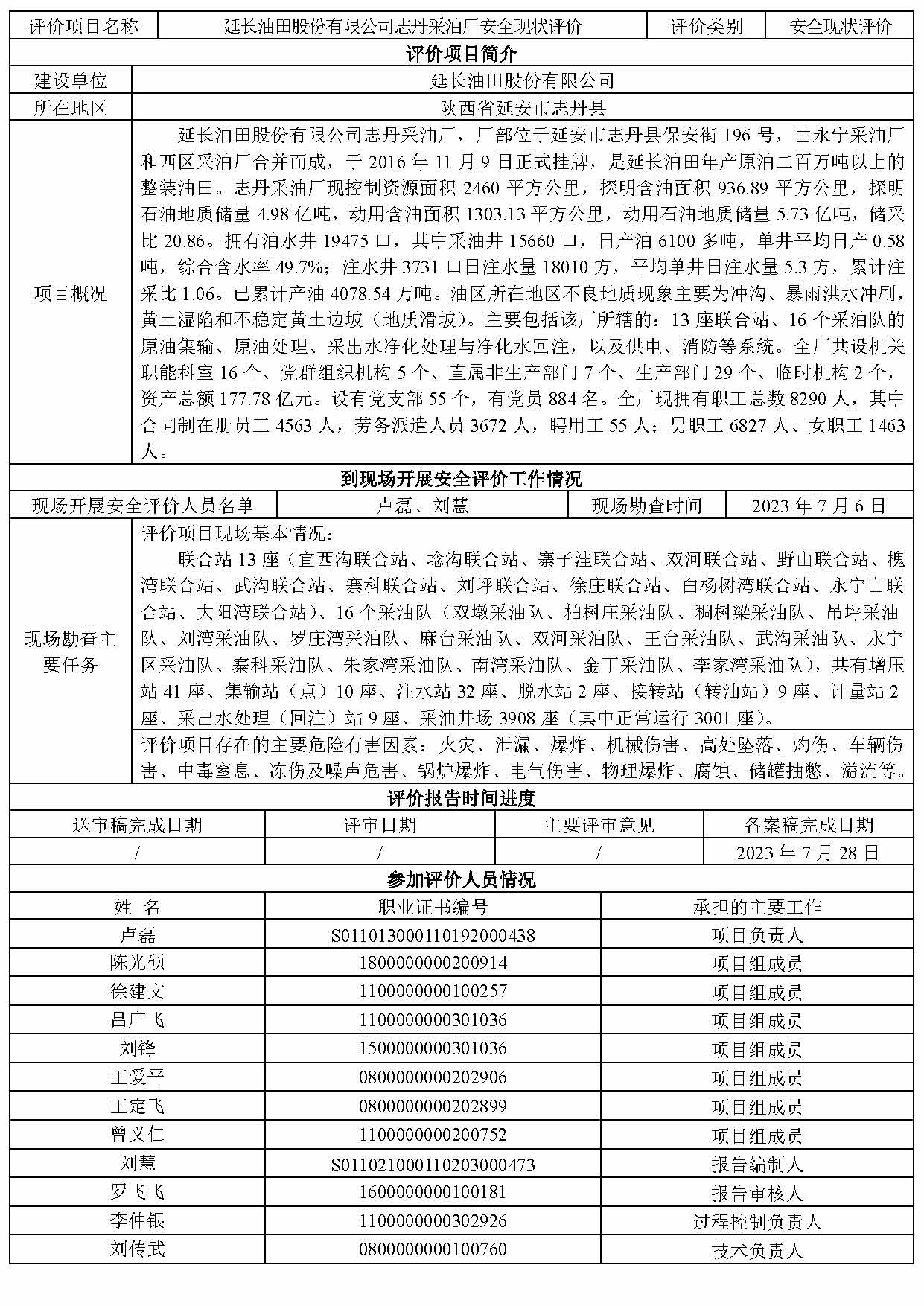 KLDAP[2023]-1.6 延長(zhǎng)油田股份有限公司志丹采油廠安全現(xiàn)狀評(píng)價(jià)