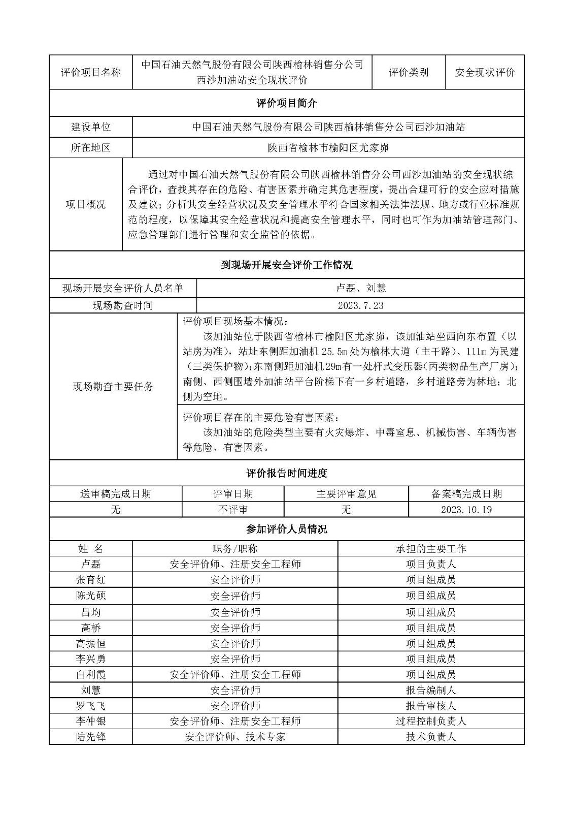 中國石油天然氣股份有限公司陜西榆林銷售分公司西沙加油站安全現(xiàn)狀評價網(wǎng)站公示