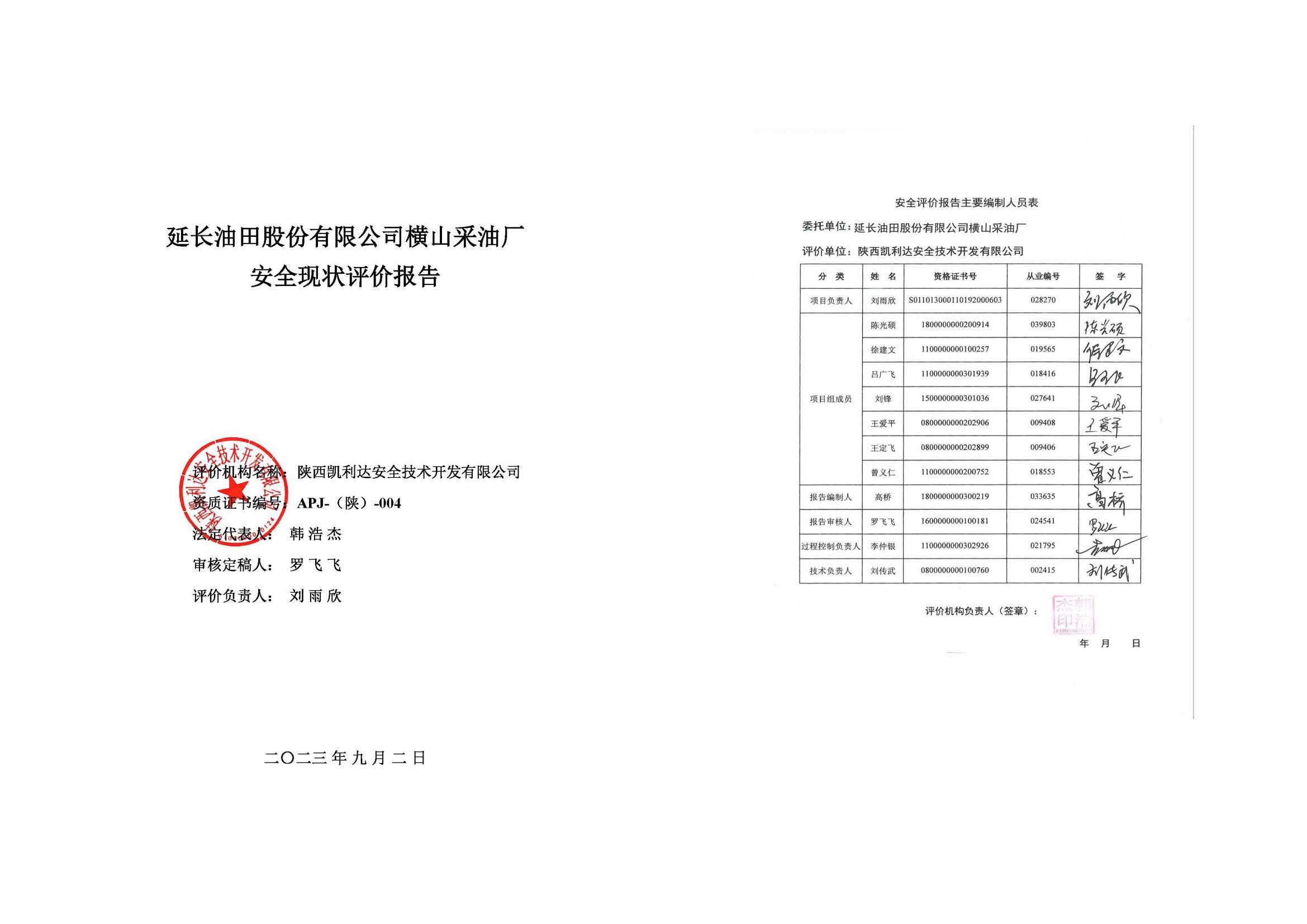 延長油田股份有限公司橫山采油廠安全現(xiàn)狀評價-網(wǎng)上公示