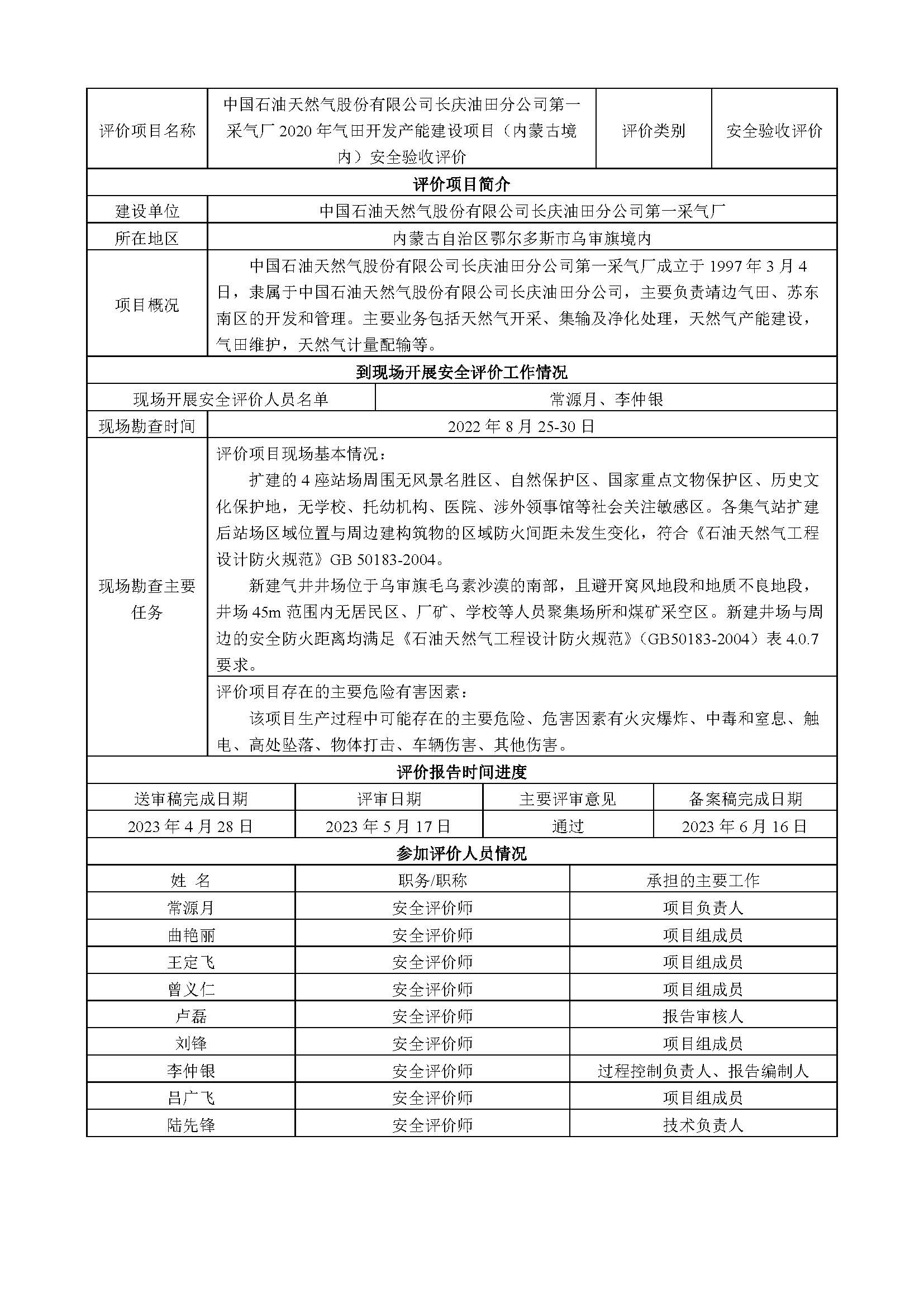 KLDAP[2023]-3.5長慶油田分公司第一采氣廠2020年產(chǎn)能建設工程(內(nèi)蒙境內(nèi))安全驗收評價-網(wǎng)上公示