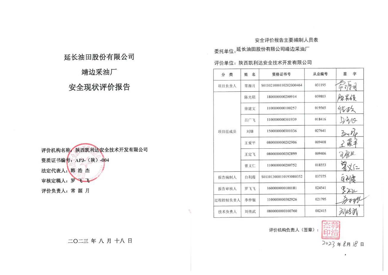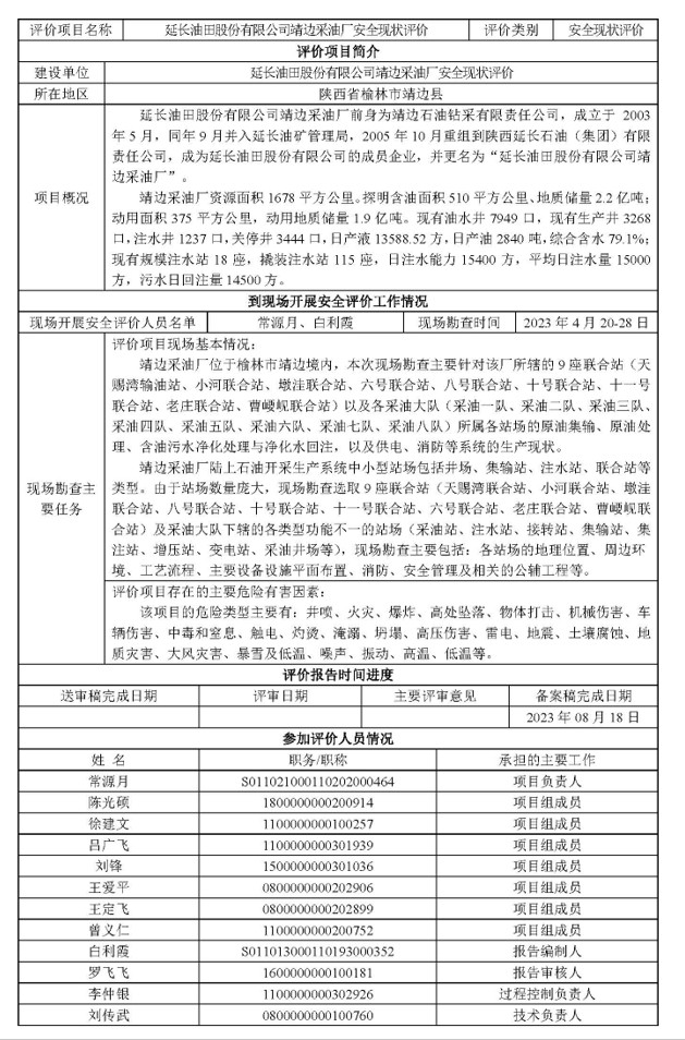KLDAP[2023]-3.8延長(zhǎng)油田股份有限公司靖邊采油廠(chǎng)安全現(xiàn)狀評(píng)價(jià)--網(wǎng)上公示