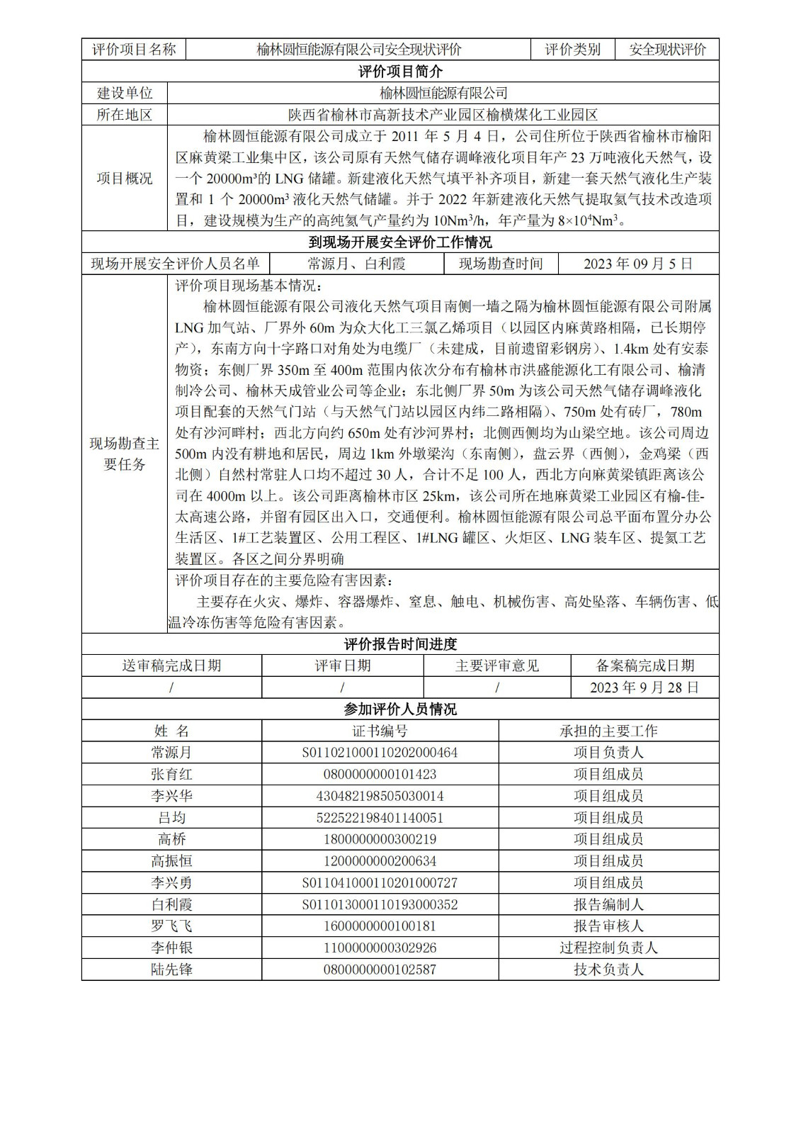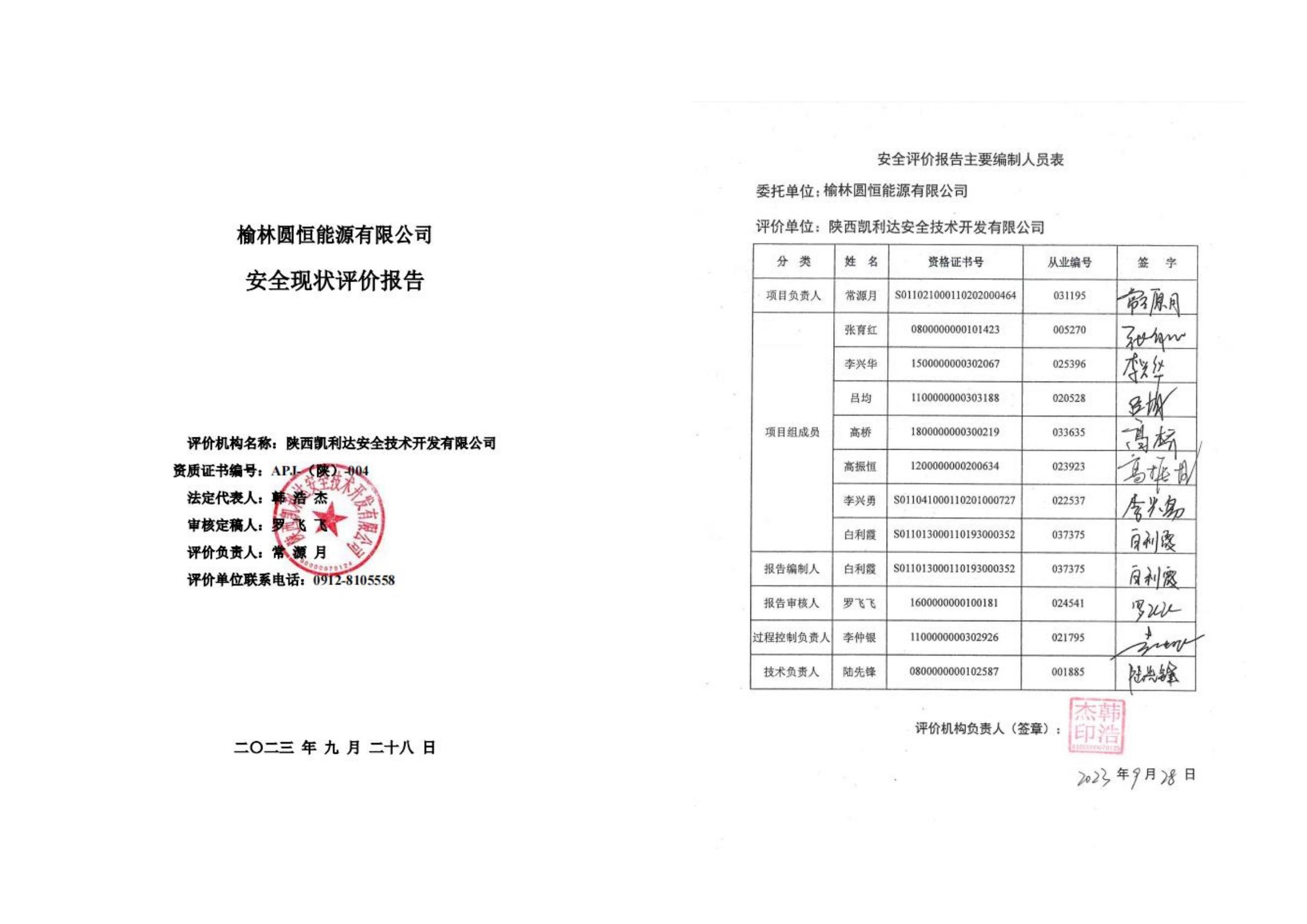 KLDAP[2023]-3.16--榆林圓恒能源有限公司安全現(xiàn)狀評價報告-網(wǎng)上公示
