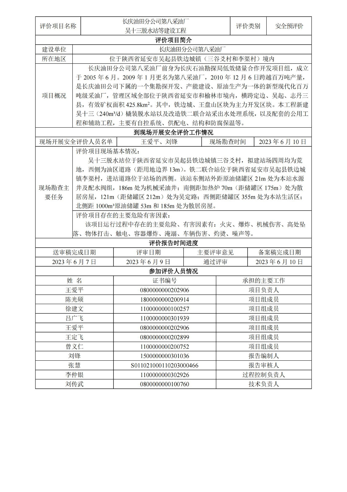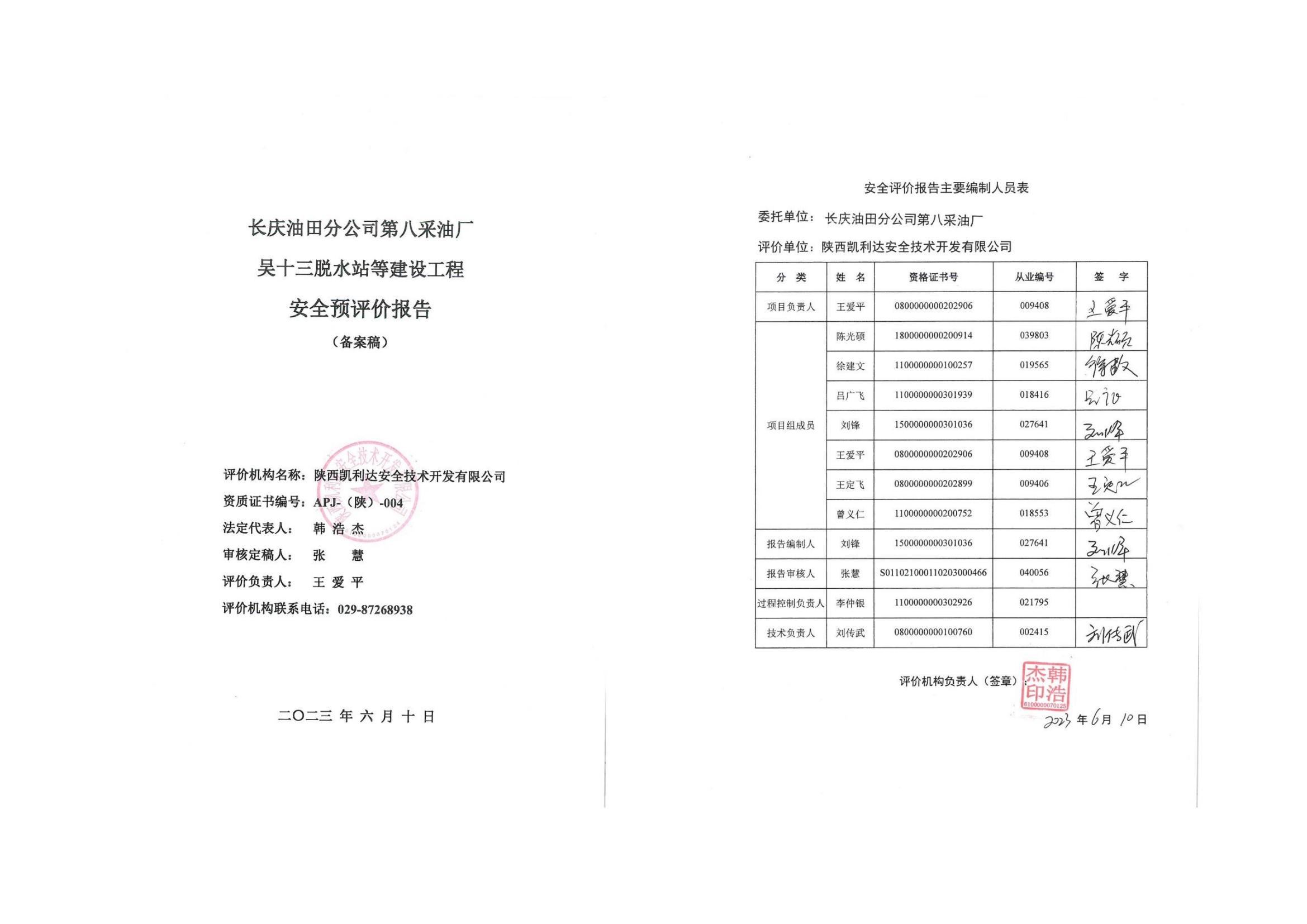 KLDAP[2023]-4.10--長慶油田分公司第八采油廠吳十三脫等建設(shè)工程安全預(yù)報告-網(wǎng)上公示