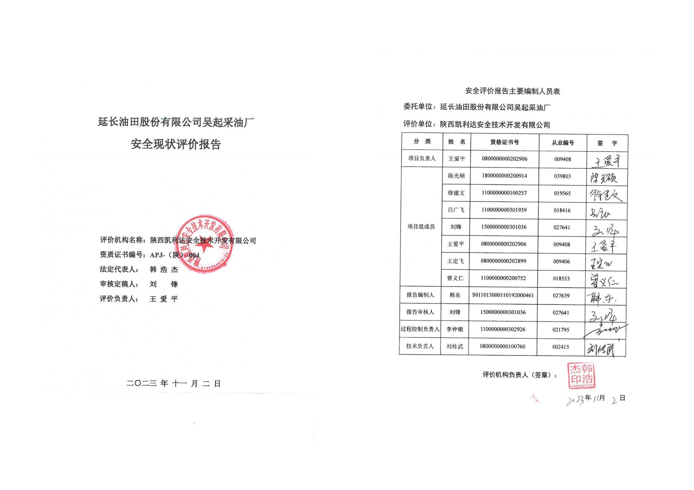 KLDAP[2023]-4.13--延長(zhǎng)油田股份有限公司吳起采油廠安全現(xiàn)狀評(píng)價(jià)報(bào)告-網(wǎng)上公示