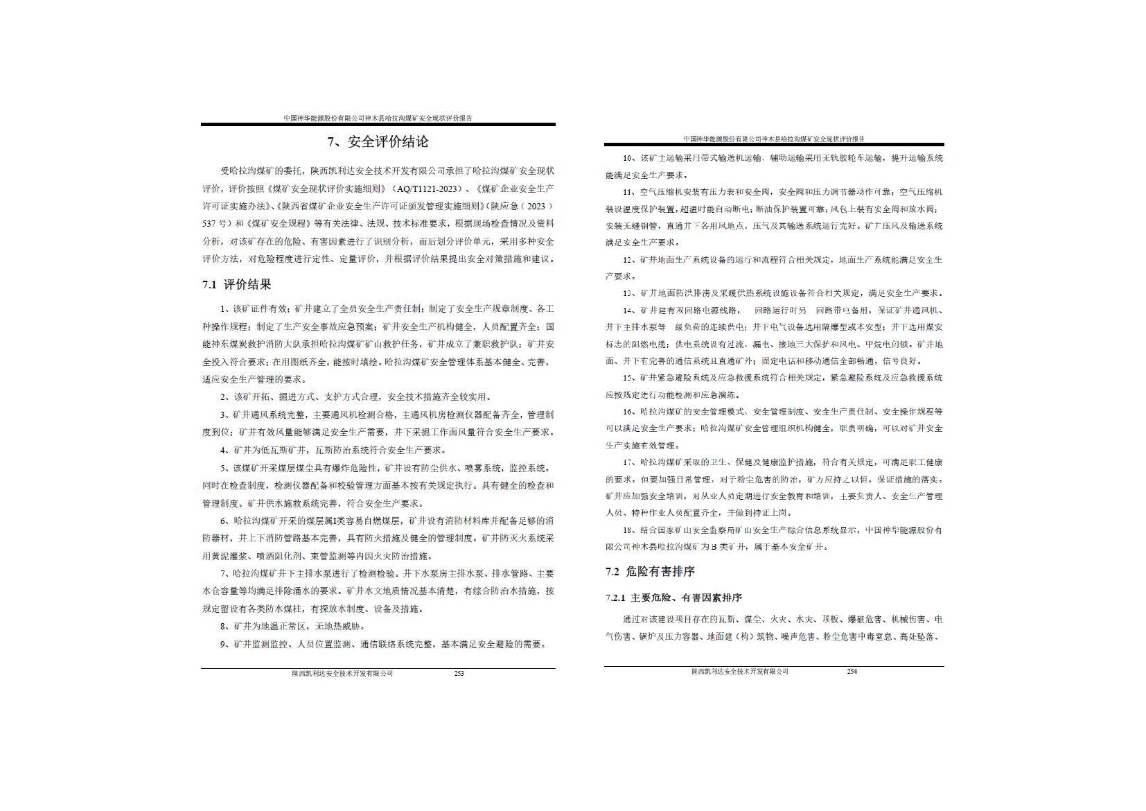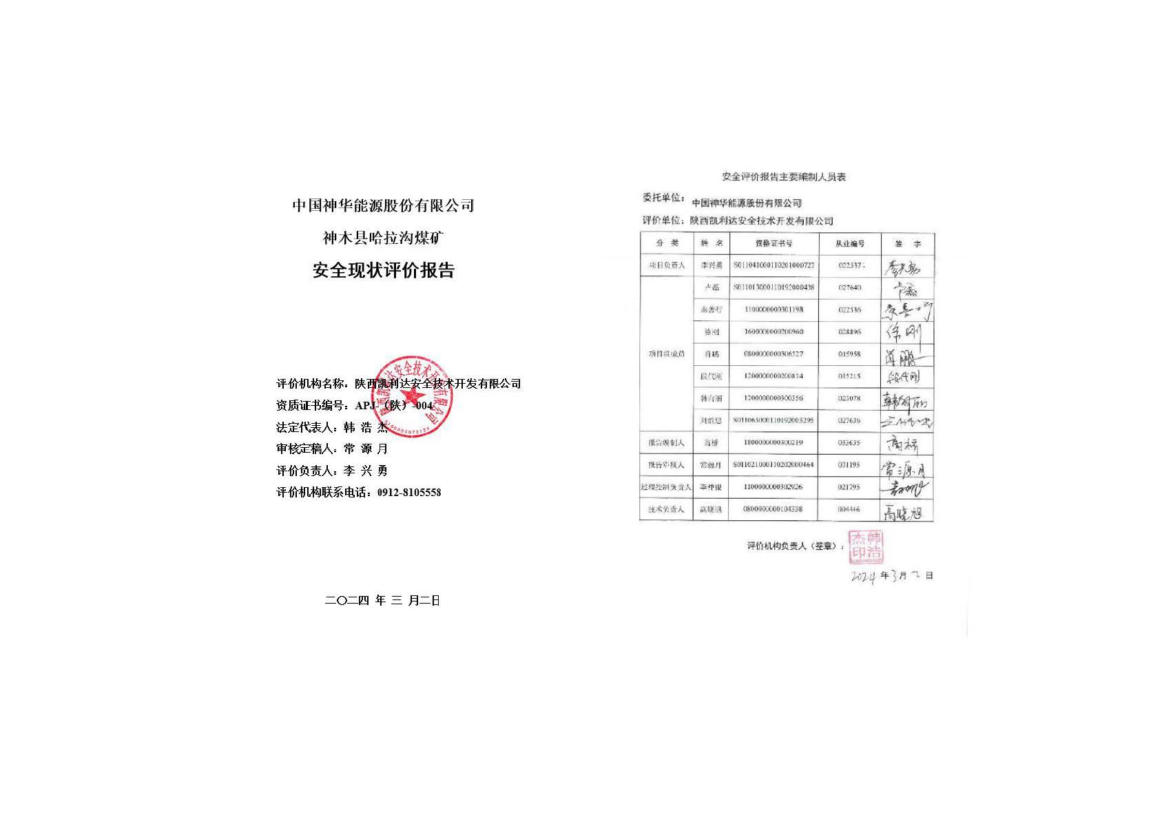 KLDAP[2024]-煤炭-現(xiàn)-01 中國神華能源股份有限公司神木縣哈拉溝煤礦安全現(xiàn)狀評價
