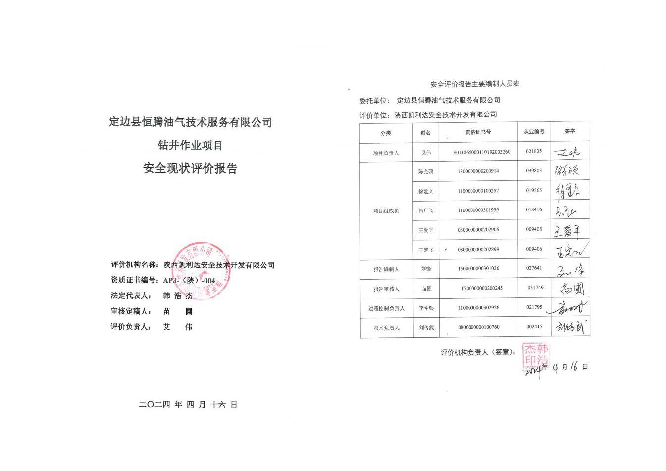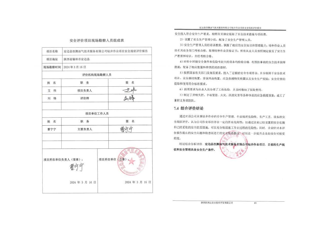 KLDAP[2024]-1.6 定邊縣恒騰油氣技術(shù)服務(wù)有限公司鉆井作業(yè)項(xiàng)目安全現(xiàn)狀評價(jià)