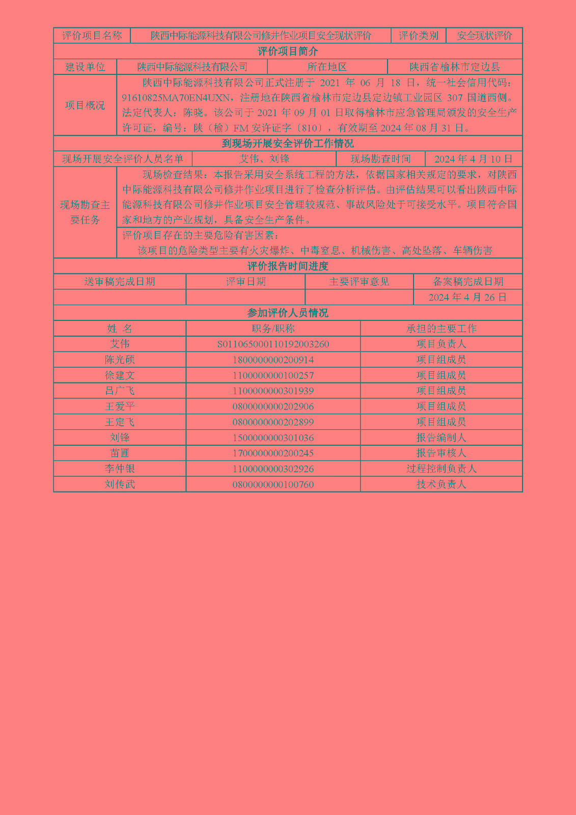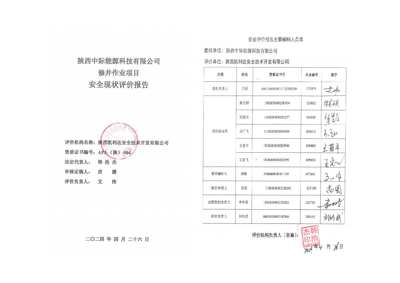 KLDAP[2024]-1.7 陜西中際能源科技有限公司修井項目安全現(xiàn)狀評價