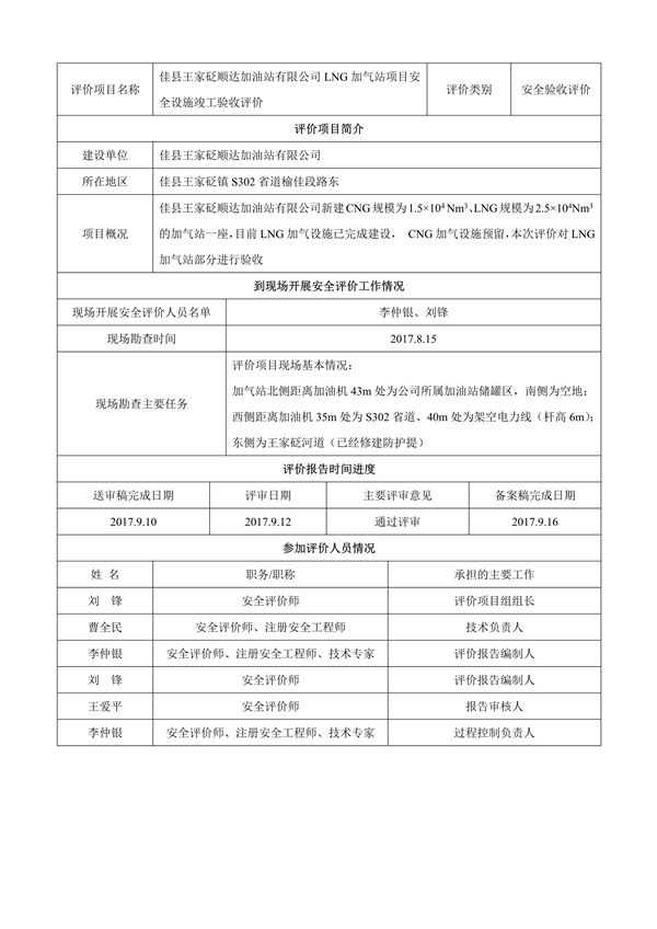 佳縣王家砭順達(dá)加油站有限公司LNG加氣站項(xiàng)目安全設(shè)施竣工驗(yàn)收評(píng)
