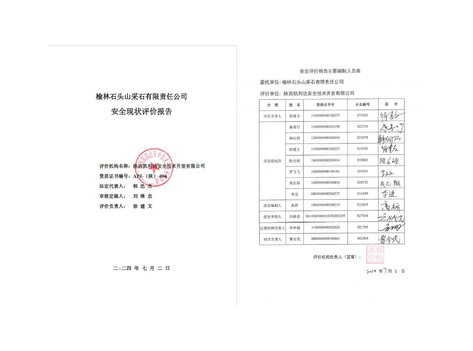 KLDAP[2024]-2.15 榆林橫山石頭山采石場責(zé)任公司安全現(xiàn)狀評價(jià)報(bào)告